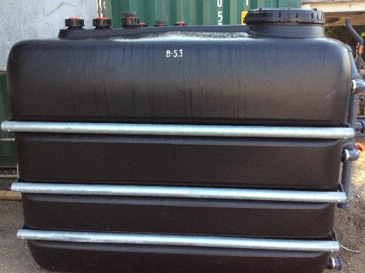 Sistema: Tanque usado Material: Plástico Comprimento: 2.13 m Altura: 2,30 m Largura: 1,60 m Volume: aprox. 7.83 m3 Conexões: DN 25, DN 50 e DN 80 s. Foto