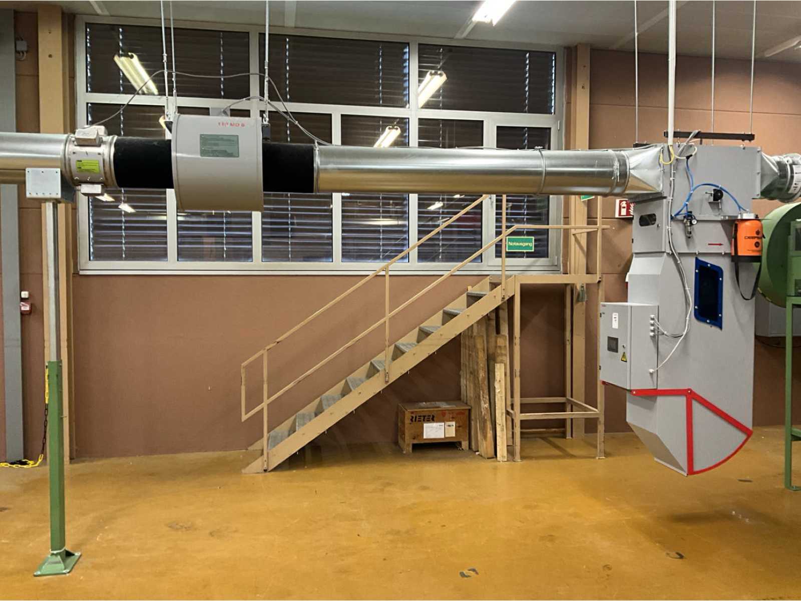with in-reel stand, working width approx. 2200 mm, central control screen integrated power 2-door cabinet and 2-fold bag filter installatin with combined piping, total floorspace apport. 4000 x 5500 mm, reference number #10575 Auction-ID: A1-44567-93