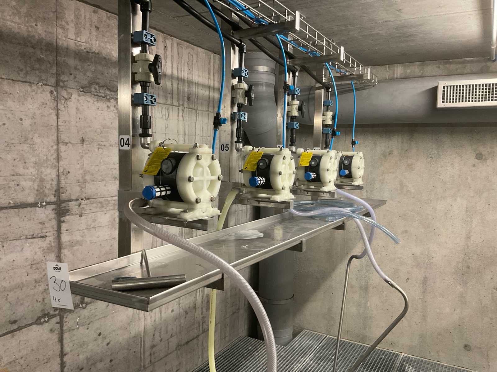 consisting of 2 stations each with approx 53 pnuematic valves 53-exit unit, with stalinless steel frame, all flexible plasic piping, 2 cone shaped stainless steel tanks, manual control stations, 2 weighing reverse transducers, n=1000 w1 and w2, ChemMaster 2-door power cabinet, 1-door contron main power cabinet with touch screens, stanless steel fame, Mettler Toledeo weighing scale, type ICS 429, 2 pumps with stainless frame, included plastic piping, (without stainless steel piping) coloring department, reference number #10624 Auction-ID: A1-44567-24