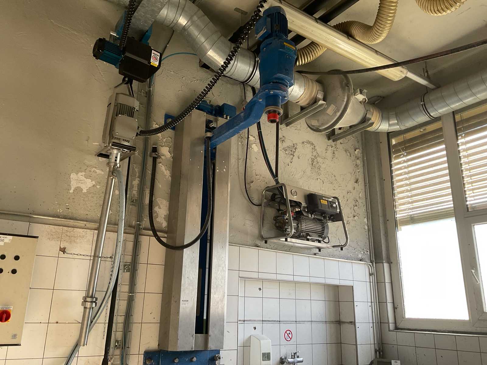 Working width 925 mm, dimension approx. 1500 x 2000 mm, driven motor, combined piping, height approx. 3000 mm, reference number #10086 Auction-ID: A1-44567-23