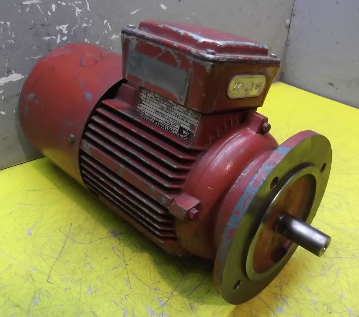 Electric motor, three-phase motor-Manufacturer: ZSE MEZ, electric motor type 4AP80-4s-Power: 0.55 kW-Speed: 1380 rpm-Shaft: Ø 19 x 40 mm-Design: B5-Protection rating: IP44-Dimensions: 265/200/H210 mm-Weight: 10.1 kg