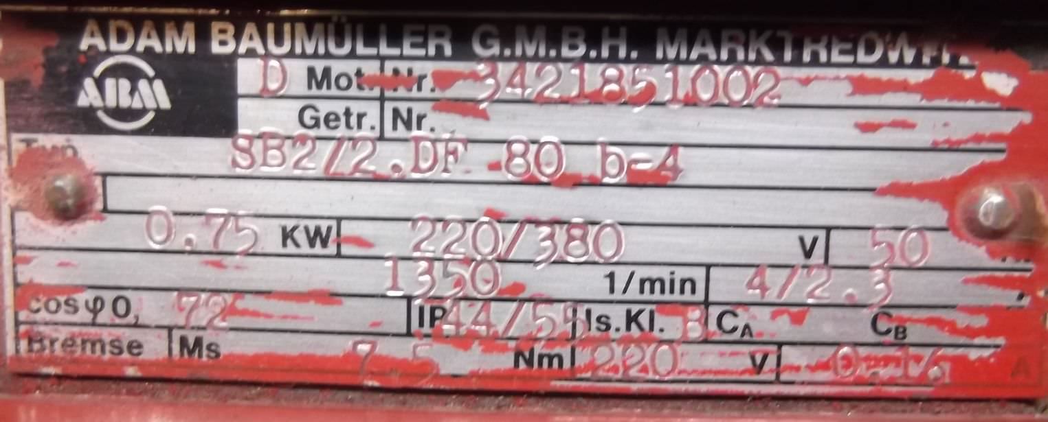 Adjustable geared motor, variable speed geared motor, electric motor -Manufacturer of gearbox: Lenze, Type: 11.431.10.08.1 -Manufacturer Motor ATB Type: ERFY 0.55/4-7 -Motor power: 0.37 kW -Adjustable speed range: 111 to 617 rpm -height of shaft axis: 50 mm -Drive shaft: Ø 16 mm -Number: 2 motors available -Price: per piece -Dimensions: 370/254/H190 mm -Weight: 14.5 kg