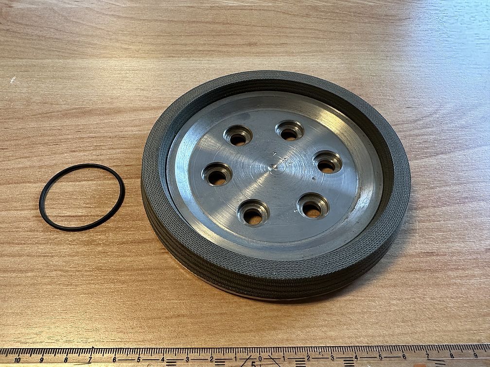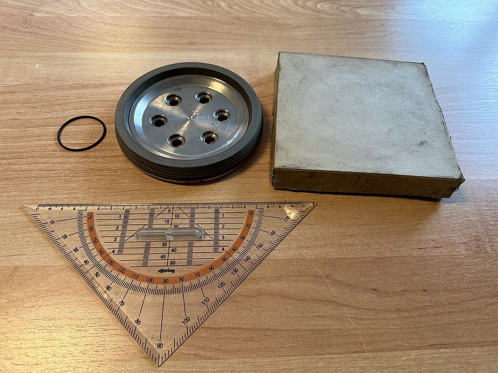 Friction wheel for adjustable gear motor, variable speed gear motor, electric motor -Condition: unused -Manufacturer: Prym type L15 -Friction wheel: Ø 138 mm -Total height: 22 mm -Recess: Ø 75 mm -Hole circle: Ø 60 mm -Quantity: 6x friction wheels available -Price: piece -Dimensions: 138/138/H22 mm -Weight: 1.2kg
