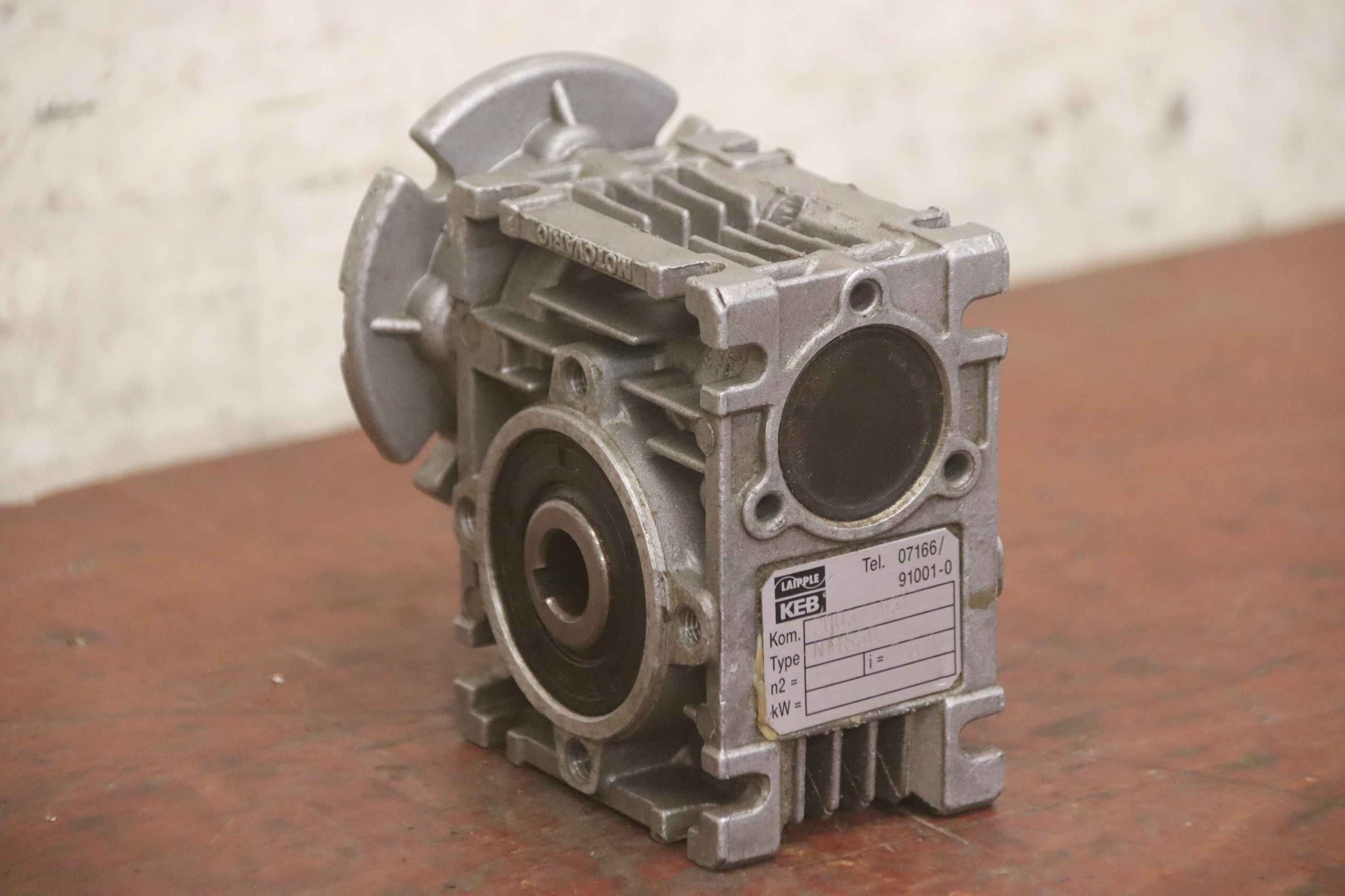 Gear motor, electric motor, three-phase motor, electric gear motor-Gear motor: from automatic cutting machine Bierrebi TA 103-Manufacturer gearbox: Bonfiglioli type MVF 62/P-Speeds: approx. 90 rpm i= 1:15-Manufacturer engine: Neri type FC71FE-4-Power: 0.37 kW / 1350 rpm-Shaft: Ø 28 x 10 mm-Protection class: IP 54-Dimensions: 490/140/H190 mm-Weight: 16.1 kg