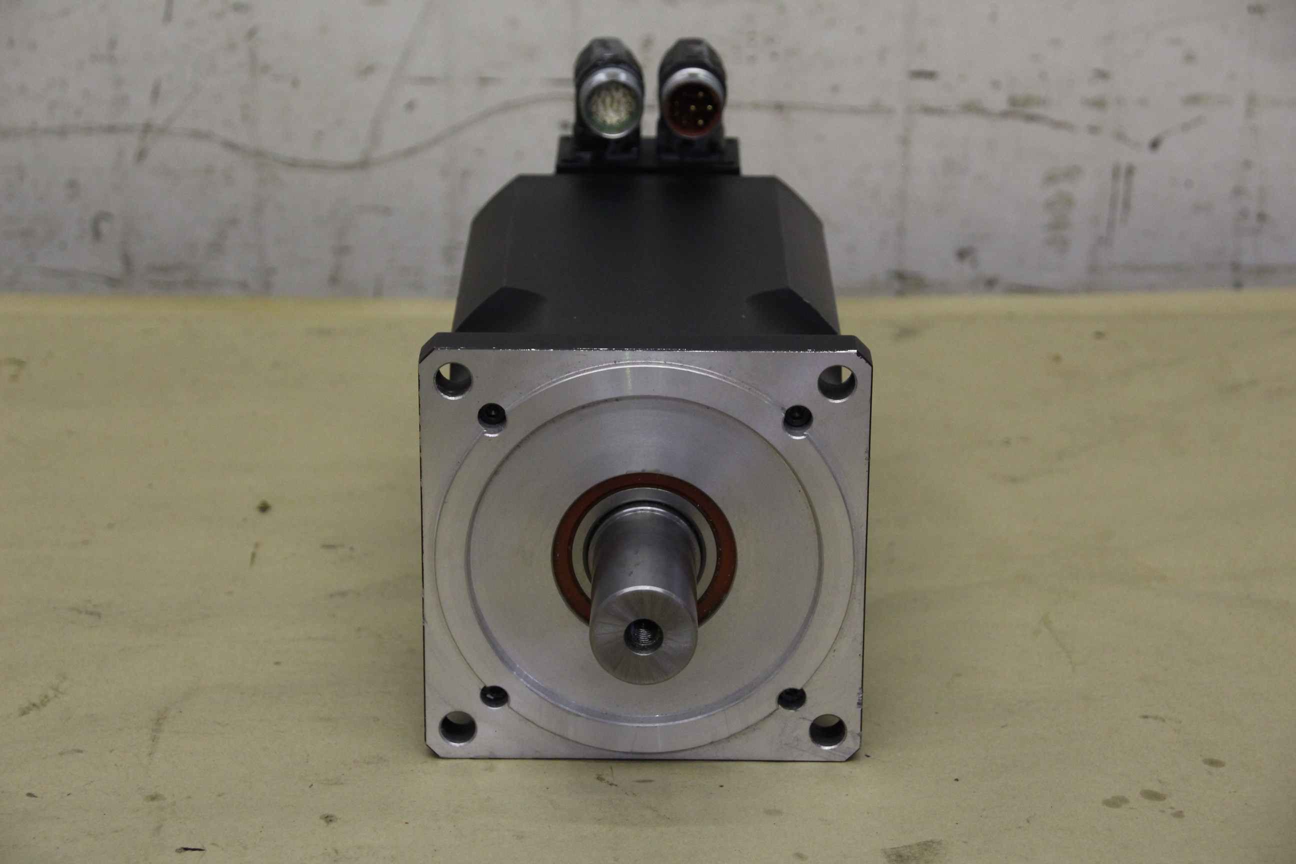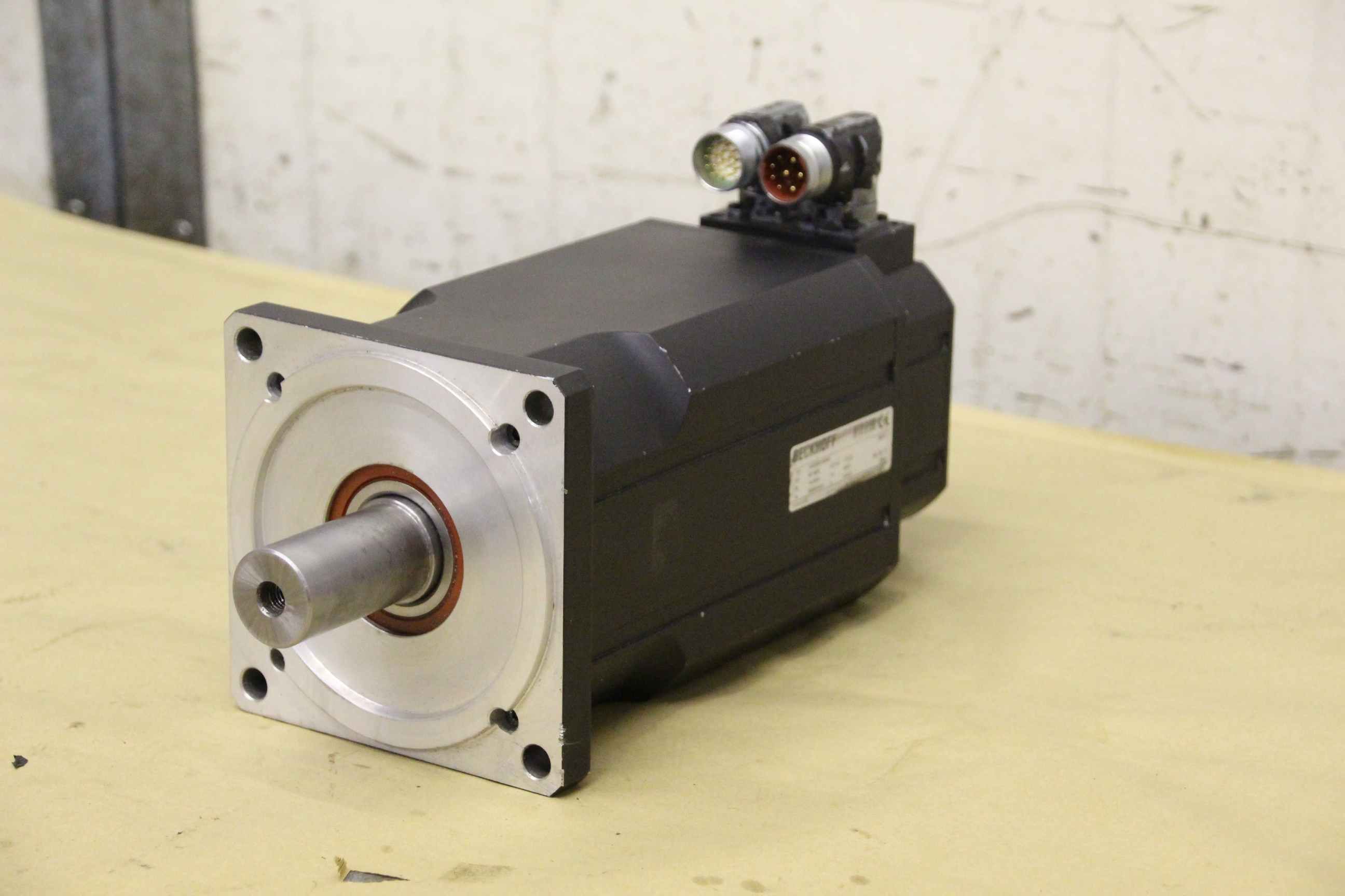 Permanent magnet motor, permanent magnet motor, electric motor, permanent magnet motor, permanent magnet motor, servo motor, permanent magnet main drive motor-Manufacturer: Indramat, motor from machining center Schleicher WV-SYS 160-1050-Type: MAC112B-1-PD-2-C / 130-A-1 / S005-Speed: 1500 rpm-Brake: 14 Nm DC 24 V-Shaft: Ø 32 x 60 mm-Number: 2x motors available-Price per piece-Dimensions: 550/210 / H250 mm-Weight: 38 kg