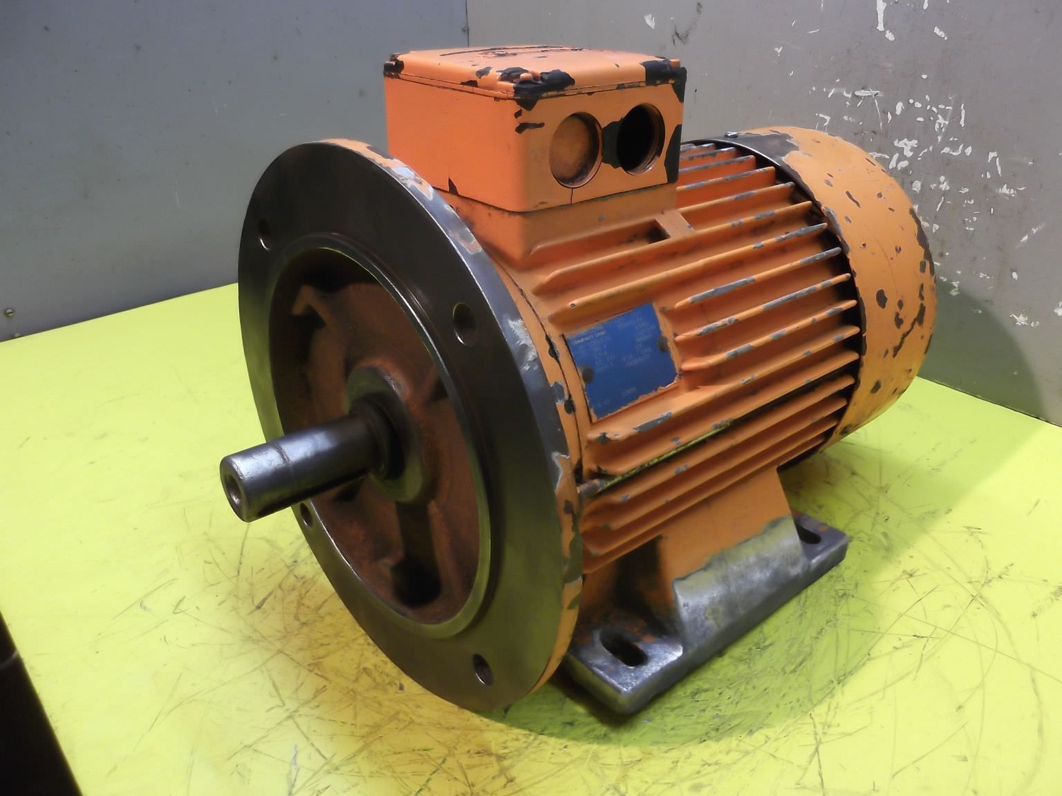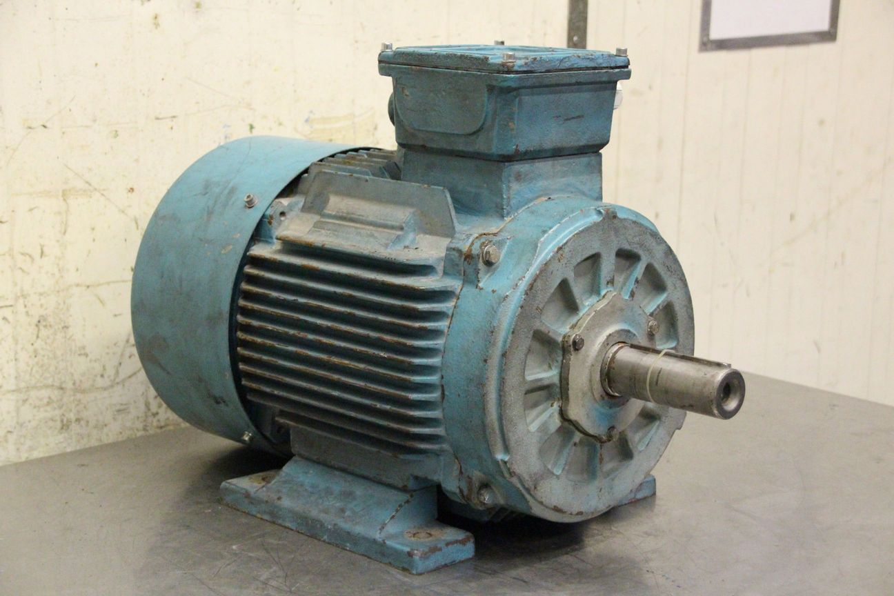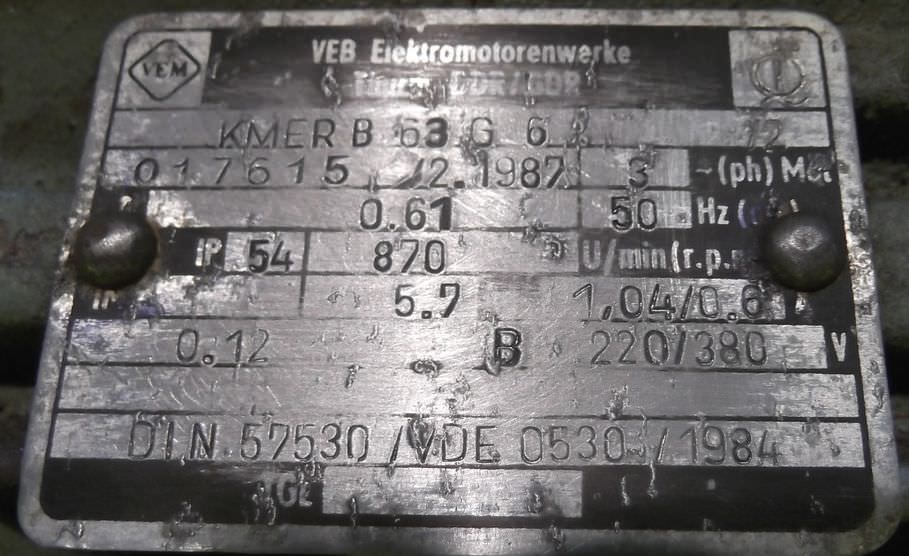 Electric motor, three-phase motor-Power: 0.12 kW-Speed: 870 rpm-Shaft diameter: 11 mm-Construction: B3-Protection class: IP 54-Number: 3x available-Price: per piece-Dimensions: 180/134/H160 mm-Weight: 6 kg