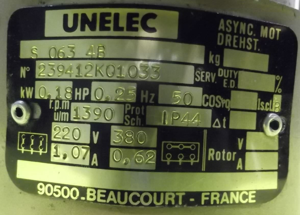 geared motor, electric motor -Speed: 683 rpm -Power: 0.18 kW -Design: B5 angle -Shaft diameter: Ø 14 mm -Protection class: IP 55 -Weight: 7 kg