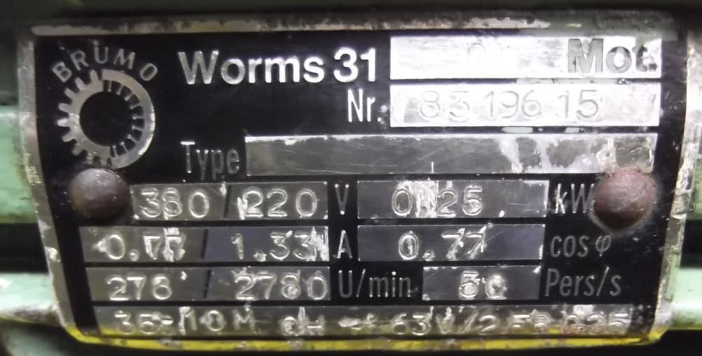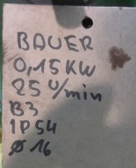 Gear motor, electric motor-Speed: 25 rpm-Power: 0.15 kW-Construction: B3-Diameter shaft: Ø 16 mm-Protection class: IP 54-Number: 1x motors available-Price: per piece-Dimensions: 340/185/H170 mm-Weight: 10.9 kg