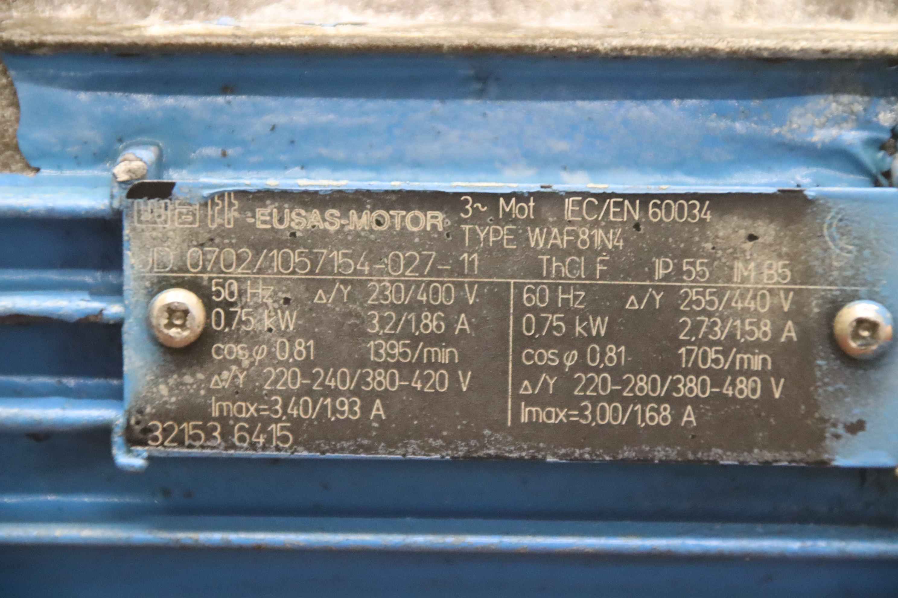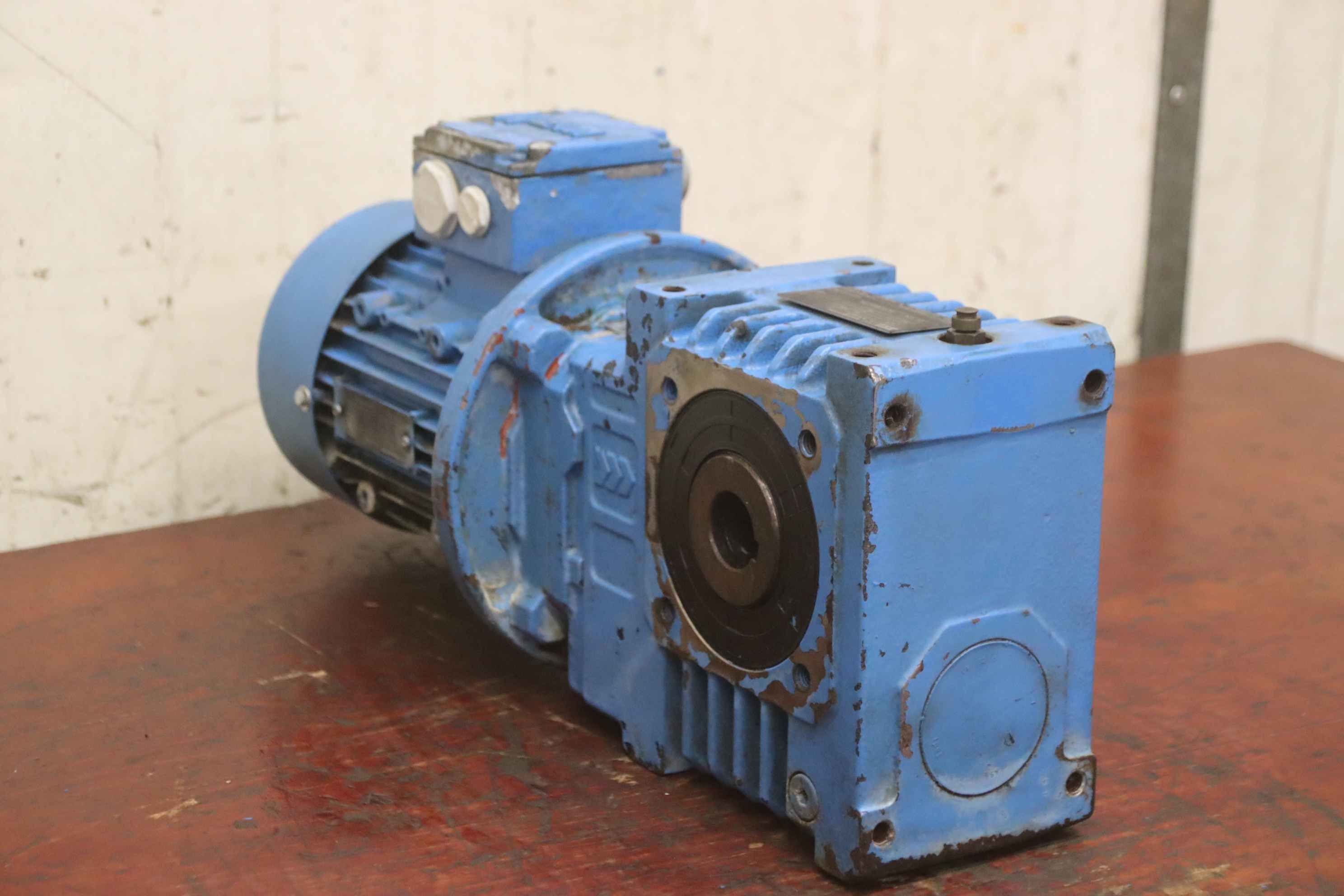 gear motor, electric motor, electric gear motor-Manufacturer: Watt Drive, gear motor type SUA 506B IA 81N4-Speed: 13.7 rpm-Engine: Type WAF81N4 0.75 kW-Shaft: Ø 30 x 125 mm-Protection class: IP55-Dimensions: 480/210/H240 mm-Weight: 37 kg