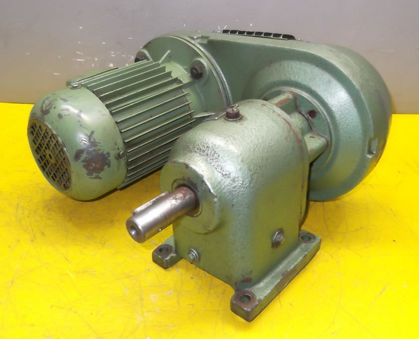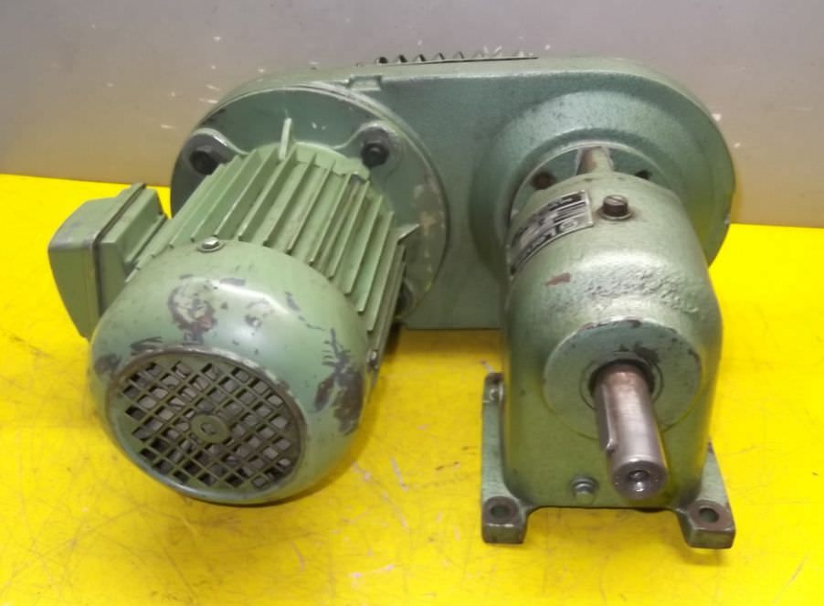adjustable gear motor, variable speed gear motor, electric motor-Manufacturer variable speed gear Lenze type: 155-ZNA0-80-4-Manufacturer Motor Hanning type: 8F4-083-Motor power: 0.75 kW-Speed range: 35-189 rpm-Motor: adjustable-Height shaft axis: 115 mm-Drive shaft: Ø 25 mm-Number: 1 piece of motors available-Price: per piece-Dimensions: 400/450/H220 mm-Weight: 31 kg