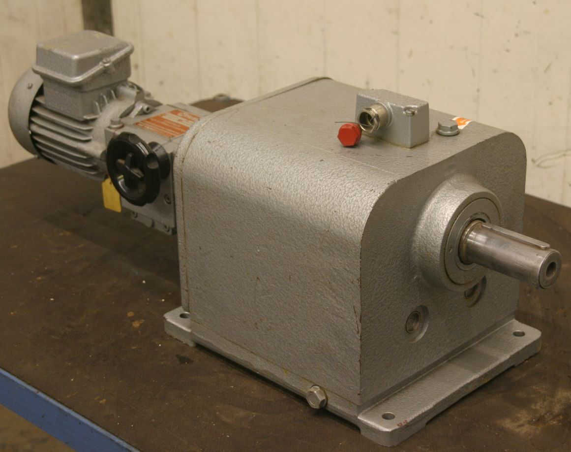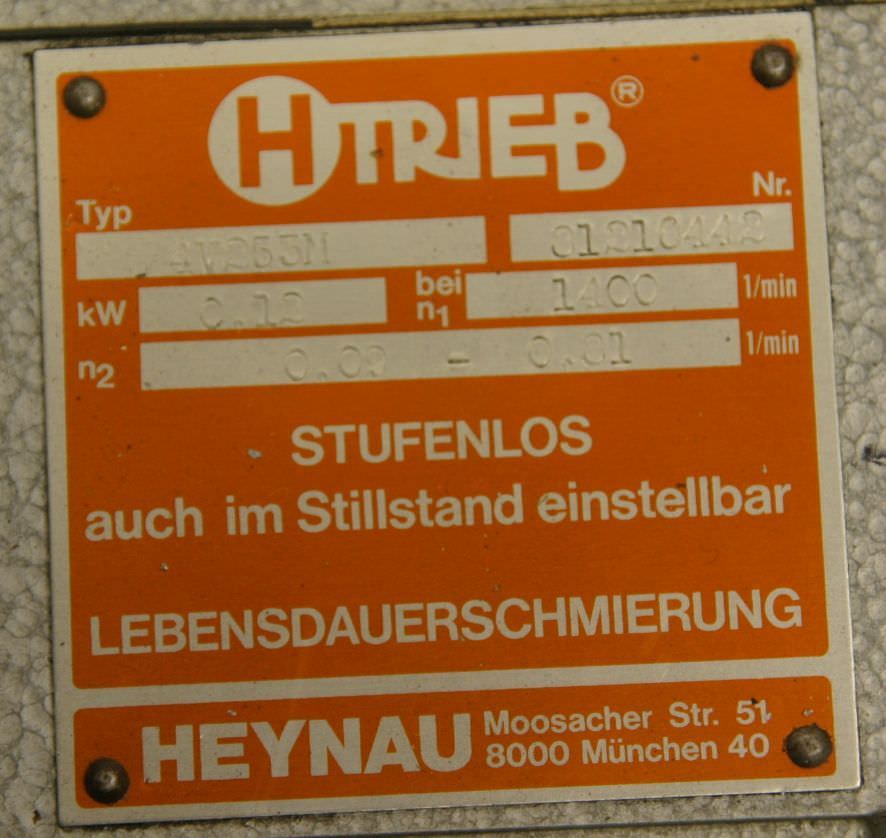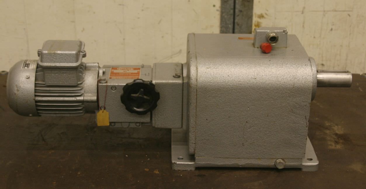 Adjustable geared motor, variable speed geared motor, electric motor -Motor power: 0.12 kW -Speed range: 0.09-0.81 rpm -adjustable -Drive shaft: Ø 35 mm -Protection class: IP 44 -Dimensions: 750/250/H270 mm -Weight: 55 kg