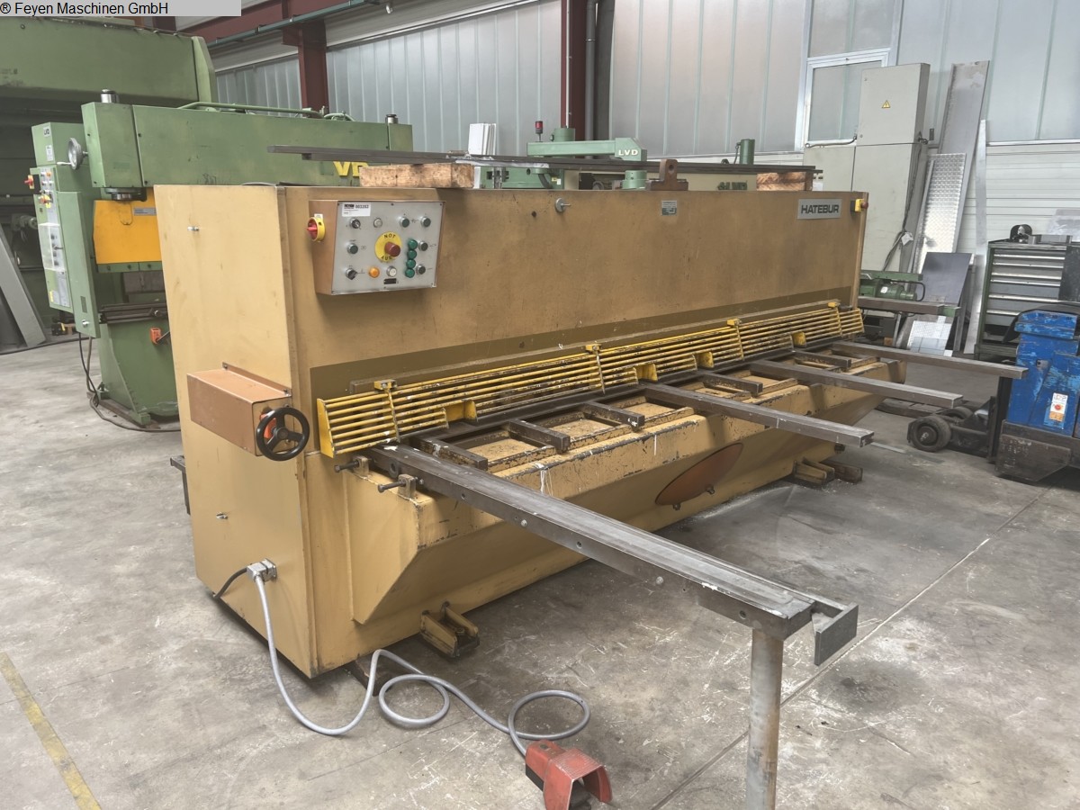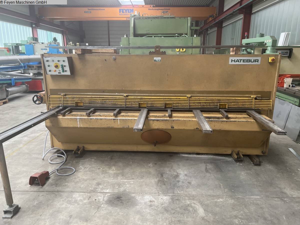 sheet width: 3100 mmplate thickness: 10 mmcutting angle: 2 °down holder: 14 Stückno. of strokes: 13 Hub/minthroat: 350 mmoil volume: 260 lcontrol: CYBELEC CybTouch 8 total power requirement: 22 kWweight of the machine ca.: 10.550 kgdimensions of the machine ca.: 4000x2250x2050 mmDomestic equipments:- Hydraulic swing cut sheet metal shears- Touch screen controller with digital display for backgauge- automatic kerf adjustment via the control- Backgauge control 1000 mm travel with recirculating ball screws- Vibration cutting machine with kerf adjustment- 2 support arms- 1 side stop- Photocell behind the machine- Cutting length limit- cut line lighting- Chrome steel knife- Ball rolls in the table- hinged finger guard with limit switch- Footswitch- CE mark / Declaration of Conformity- Bed instructions in GermanThe data for this ad was created with ModulMWS - the software solution of LogoTec ...