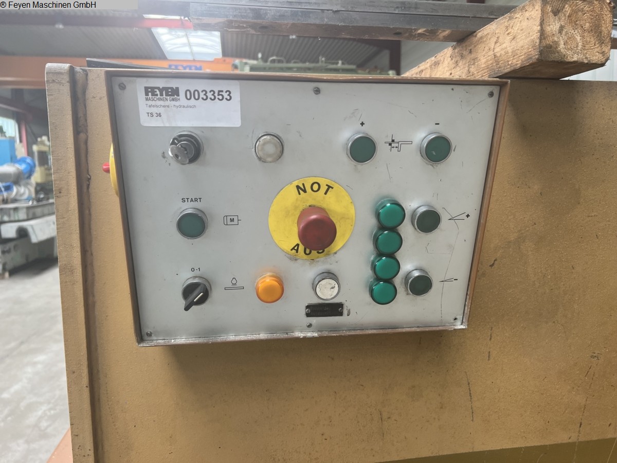 comprimento de corte: 3100 mm espessura de corte: aço de 10 mm Backgauge controlado até 1000 mm Paragem lateral e extensões de mesa Limitação do comprimento de corte Corte a iluminação da borda Peso: cerca de 10.000 kg