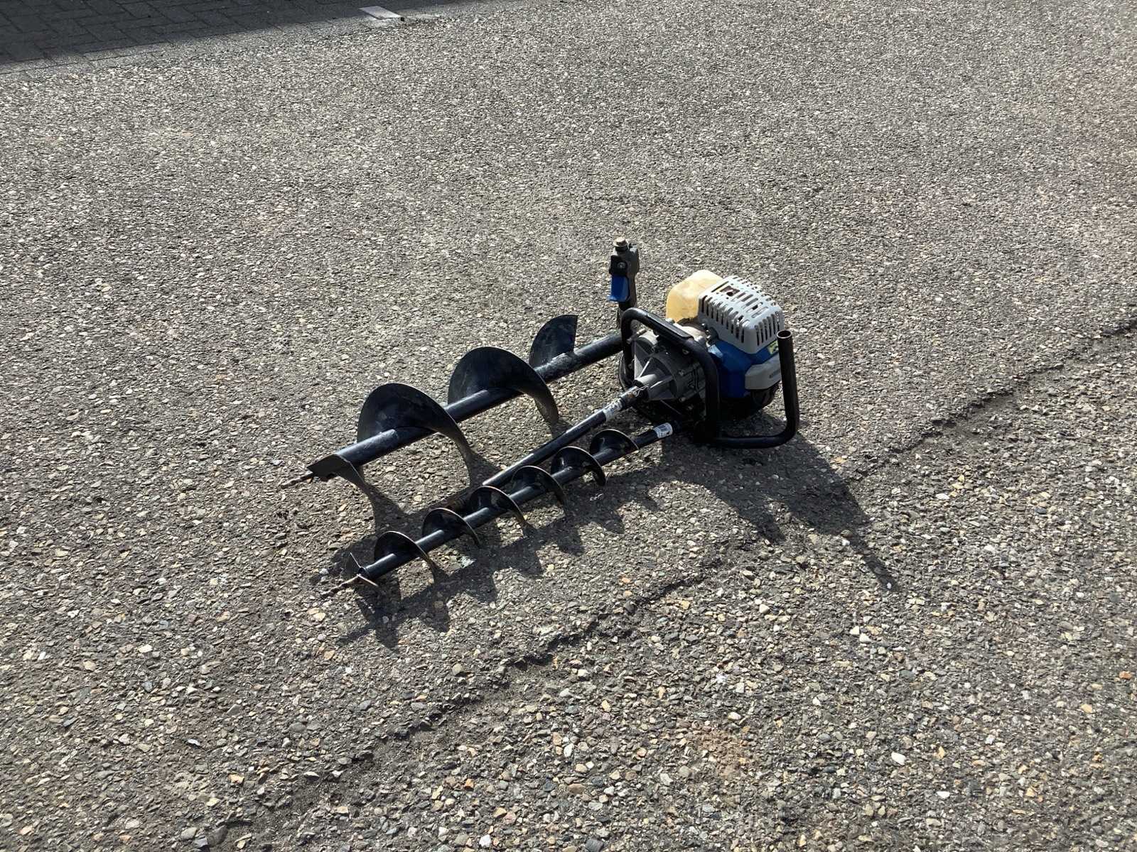 Petrol engine, 1x drill diameter 10cm length 80cm, 1x drill diameter 20 length 80cm, extension 40cm Auction-ID: A1-45424-105