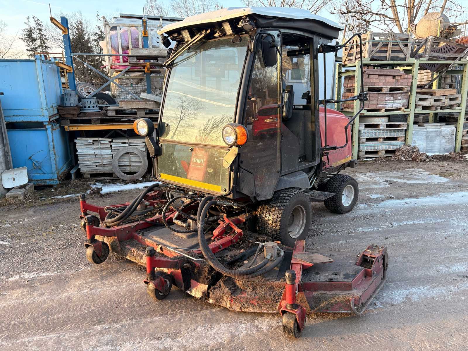 TORO Groundsmaster 4100-D Lawn Mower Tractor General information: • Manufacturer: Toro • Year of manufacture: unknown • Operating hours: 7,299 h • Application: Municipal maintenance / green areas / mowing work • New maintenance and service • New knives • New V-belts Vehicle & Equipment: • Enclosed driver's cab with all-round visibility • Cab with windscreen wipers, working lights and rotating beacons • Front and rear lighting • Compact design, articulated municipal tractor • Tyres for municipal use Attachment: • Front mower deck • Multiple knives • Support rollers on the cutting deck • Hydraulic connections and lines on the attachment Interior & Operation: • Driver's seat with armrests • Multi-function controls and joystick • Digital InfoCenter display • Mechanical controls for driving and working functions Kristina ...
