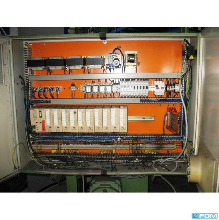 material width:300 mmcoil weight:2 x 1,25 tmaterial thickness:0,4 - 1,2 mmcoil internal diameter:320 - 420 mmcoil external diameter:1300 mmno. of straightening rolls:9 straightening roll diameter:30 mmnumber of draw-in rolls:2 roll diameter:30 mmspeed:3 - 30 m/minfeed length:0 - 9999,9 mmpower requirement:3,0 + 2,5 kWweight of decoiler:0,7 tdimensions decoiler (WxDxH):2,1 x 1,4 x 1,5 mmweight of straightening machine:0,45 tdimensions straightener (WxDxH):1,5 x 0,8 x 1,1 mmweight of the feeder:0,4 tdimensions feeder (WxDxH):1,2 x 0,8 x 1,1 mmuniversal straightening machine:SC 12-FQ double decoiler:2352 B-FPS expansion:hydraulic lag brake:pneumatic electronic roll feed:WAV-RDS-2Z, Modell 1082 B intermittant lifting:pneumatic control:Siemens S 5