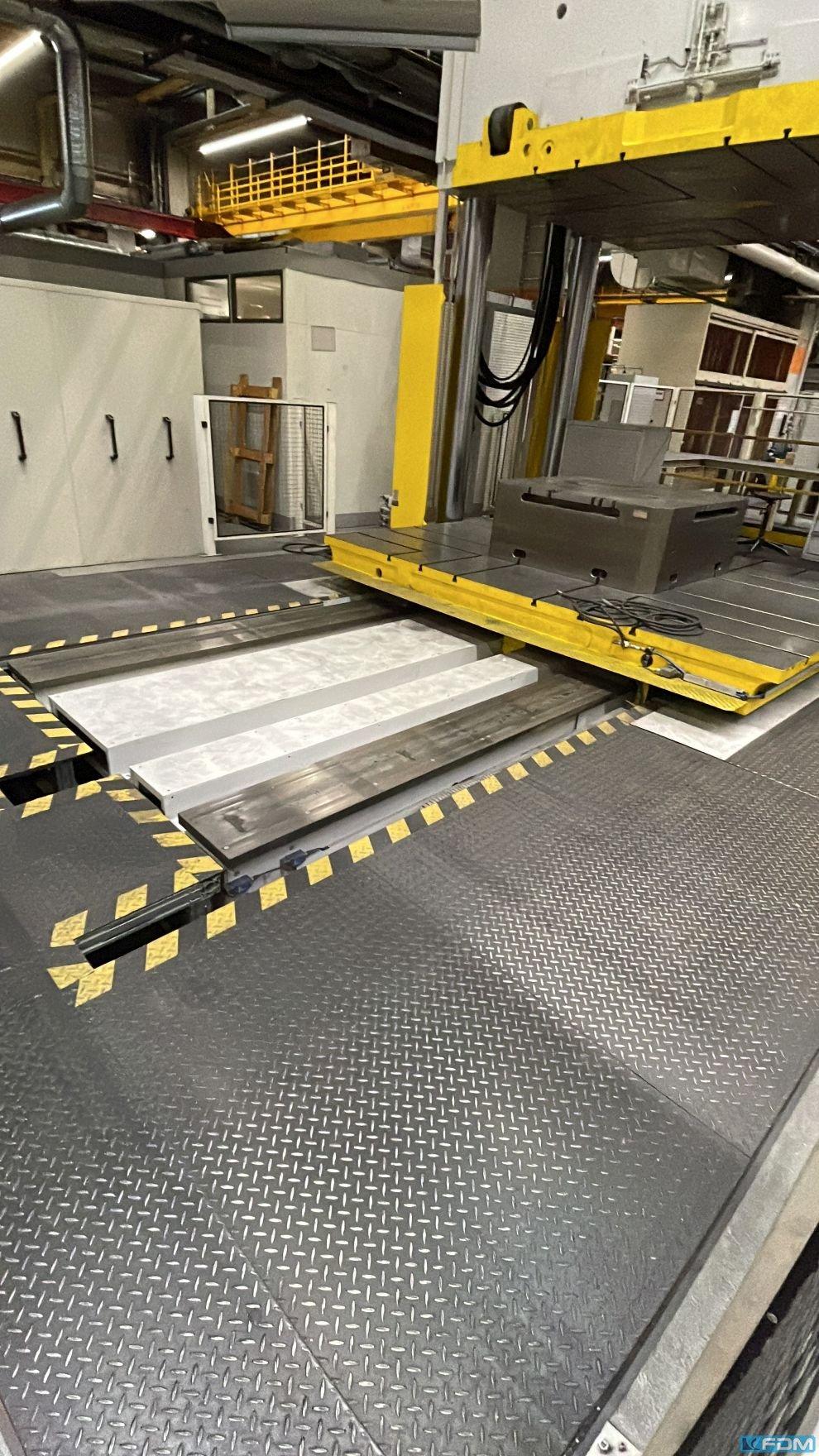 pressure:250 t table length:4000 mm table width:3000 mm Controls:SIEMENS SIMATIC C7 PRESS DESIGN:. - frame design : 4 column :. - moving bolster : yes :. PRESS FORCES:. - total force (nominal):250 to PRESS TABLE:. - clamping surface (left-right):4000 mm - clamping surface (front-back):3000 mm - tool weight max.:100000 kg - number of T-slots:12 - distance between T-slots:375 mm - height above floor level:390 mm RAM:. - clamping surface (left-right):4000 mm - clamping surface (front-back):3000 mm - number of T-slots:12 - distance between T-slots:375 mm - stroke:2900 mm - tool weight max.:50000 kg RAM (HYDR. PRESS):. - number of main-cylinders:1 - approximation velocity max.:180 mm/s - working velocity max.:50 mm/s - restoring force of ram:95 to TOOL ASSEMBLY DIMENSIONS:. - distance table - ram max.:2750 mm - distance between columns (H-frame):4100 mm - Free passage be ...