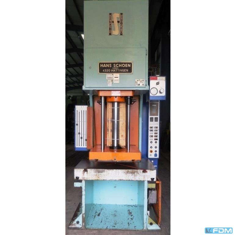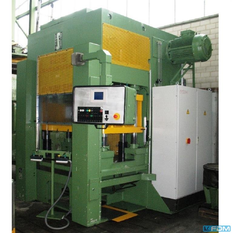 pressão: 250 t distância entre colunas: 600 mm curso: - mm requisito de potência total: 22 kW peso da máquina ca.: 9 t dimensões da máquina ca.: 2 x 2 x 3,2 m No. 3421 Prensa de molde 2500 / 700 kN Interruptor de pé de curso único de 2 mãos Interruptor de pé de curso único de funcionamento contínuo automático e basculante Tabela 500 x 500 Faixa de trabalho: Capacidade de pressão 250 toneladas Movimentação: ^22