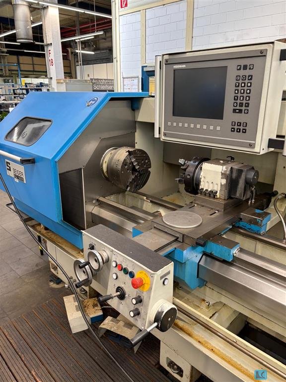 turning diameter:490 mm turning length:2000 mm total power requirement:15/20 kW weight of the machine ca.:3,6 t dimensions of the machine ca.:2,8 x1,85 x 1,9 m In like new condition Heidenhain cycle control Torsion-resistant bed, made of high-quality cast iron with hardened, precision-ground guideways and a glass scale on the X-axis Safety clutch on the Z and X axes Sealing air with carbon filter in direct position measuring system High accuracy and rigidity of the lathe spindle thanks to precision spindle bearings, spindle bore Ø 93 mm standard, optional Ø up to 130 mm Solid tailstock, quill Ø 90 mm with internal taper MK5 Large overhang above the facing slide for easy accessibility during shaft machining. The machine has Teach-in CNC Programms. Control: MC420. Tool holder: SAUTER. Texte, Bilder, Grafiken, Layout, Strukturen und Algorithmen etc. unterliegen weltweitem Urheberrecht. U ...