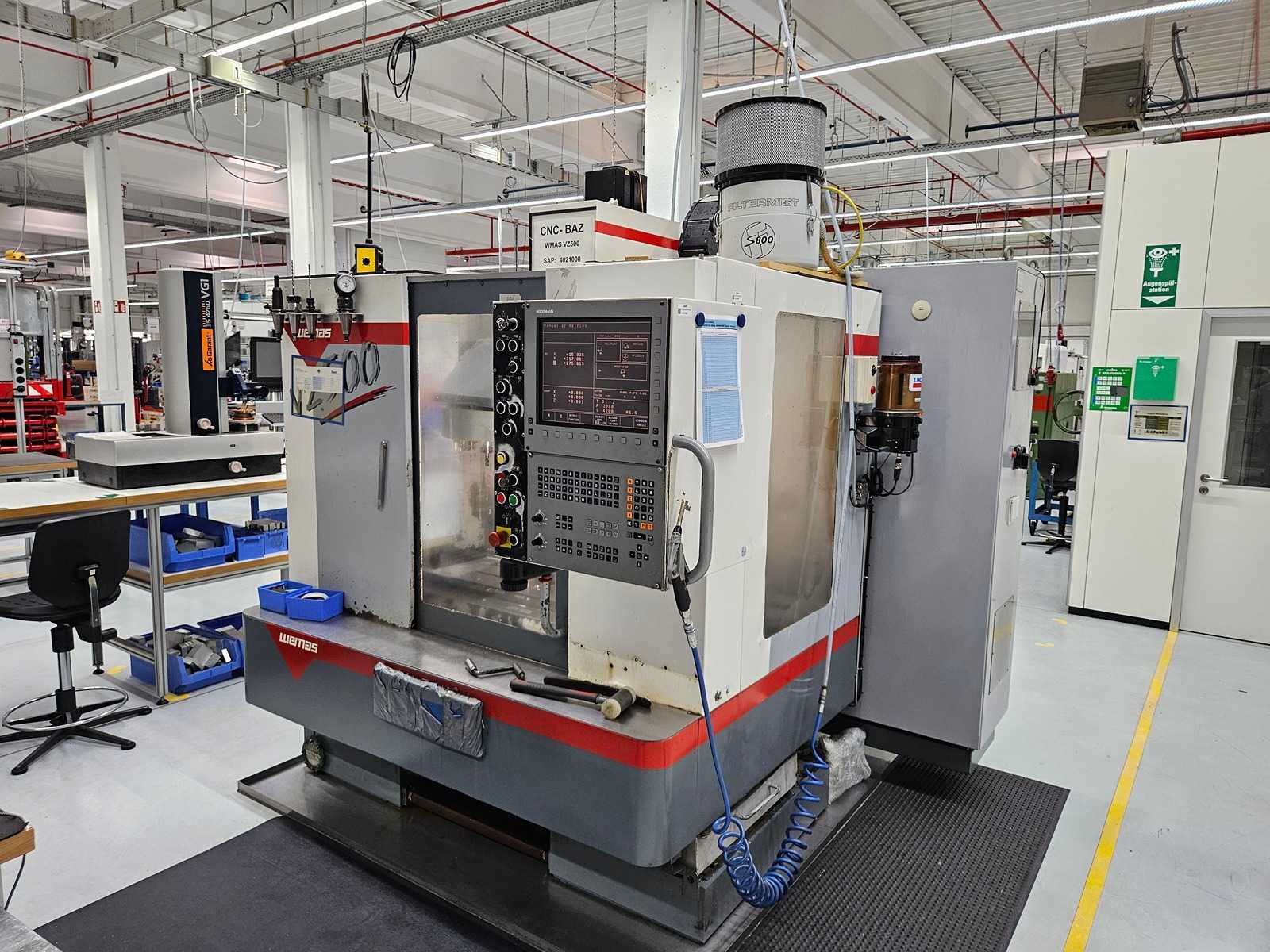 Centro de mecanizado CNC Wemas VZ 500. Año de fabricación: 2000 Control: Heidenhain Datos técnicos: Desplazamiento X 480 mm Y de recorrido 320 mm Z de recorrido 500 mm Velocidad del husillo 8000 rpm Portaherramientas SK40 Cargador de herramientas 20 posiciones Tamaño de la mesa 860 x 320 mm Peso aproximado de la máquina. 3600 kg Equipamiento: aprox. 20 portaherramientas Nota: Máquina vendida sin tornillos / dispositivos de sujeción / extracción con niebla aceitosa Auction-ID: A7-44714-4