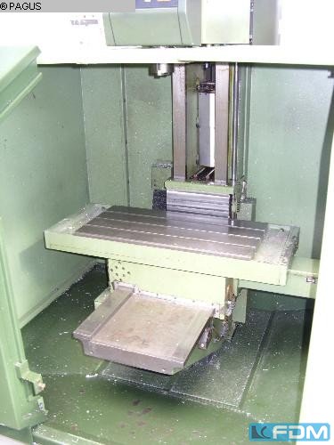 distance spindle /table:min /max 190 / 570 mm distance spindle /table:190 - 570 mm surface area:650 x 300 mm Boring power:in GG 20 40 mm bore capacity in steel:ST 60 32 mm turning speed range::50 - 5000 UpM total power requirement:2,2 kW threading:GG 20 M30 threading::ST 60 M 24 weight of the machine ca.:1400 kg table load:max. 150 kg table height:770 mm traversing speed:max X-, Y- u. W-Achse 5 m/min max. traversing speed:Z-Achse 3 m/min w-axis:380 mm workpiece height max.:495 mm tool changing time:ca. 3 sec x-travel:450 mm y-travel:300 mm z-travel:180 mm workpiece weight:1,5 kg