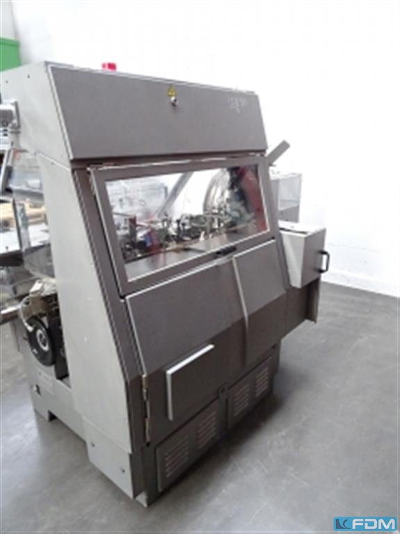 PFM SWIFT packaging machine manufactured in 1995, performs the automatic process of packaging various types of products in foil packaging. The reliable and very easy-to-use machine takes the film from a reel above the working area, that is then accurately measured, appropriately cut and cold or hot sealed. At the very end of the process, a special device punches a EUROSLOT hole in the packaging. The packaging machine tooling does not need to be changed when changing the dimensions of the packs. The SWIFT packaging machine weighs 380 kg. Technical data of the PFM SWIFT packaging machine - packing material type: single or multilayer thermo-weldable materials (propylene cellulose film, coextruded film etc.) or PVC - sealing type: elongated profile, spacing 2x 90° - capacity: 60 packs/min - device for making EUROSLOT holes - unloading conveyor - power: 3.2 kW - power supply: 380 V ...