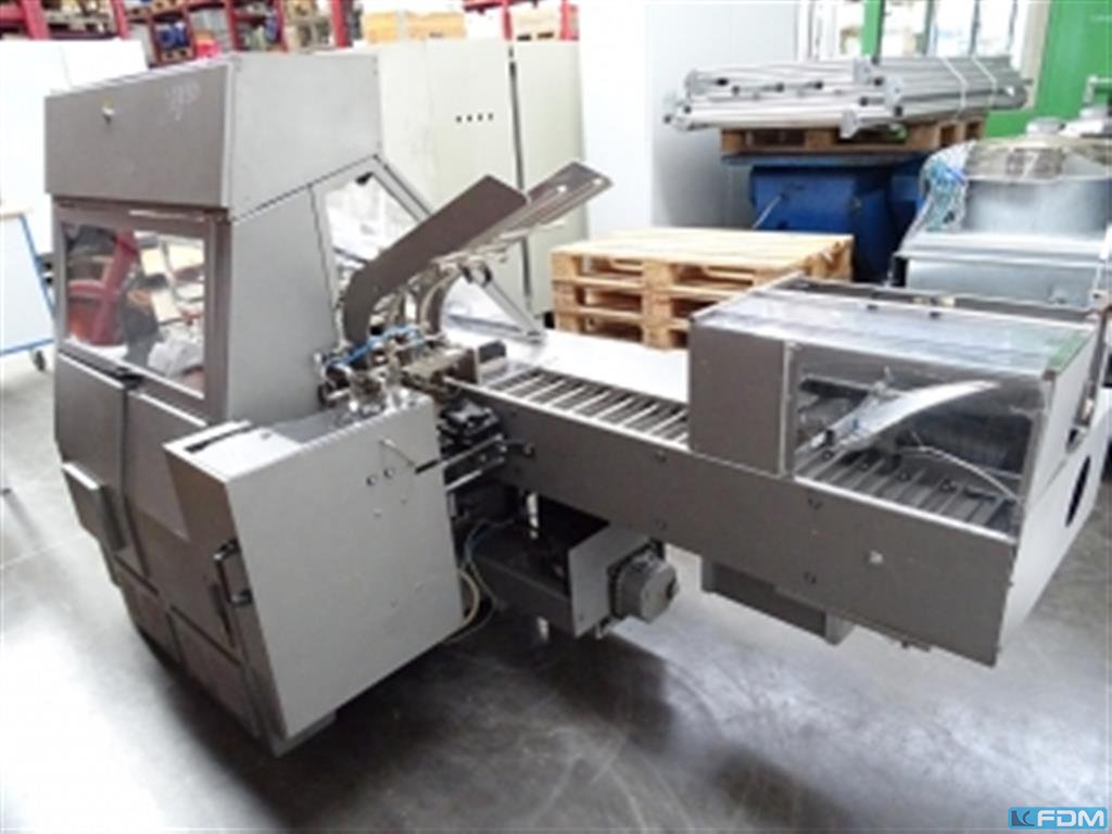 Make : Benhil Model : 8358 & 8535 Format : 25 x 41 mm 6-20g) Capacity : 510 pieces per minute Depending on weight of product Product Feed : Stainless steel Hopper and Screws Paper Feed : 90 deg Case Packer : Benhil 8535 rotary case Packer Photo centering sensor Condition : Very Good Location : Dairy Machinery UK Contact us for more information and to arrange a visit