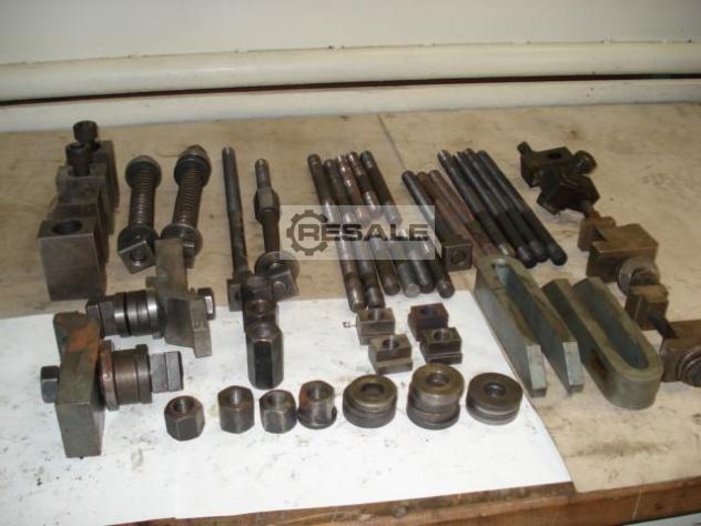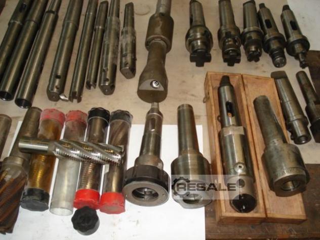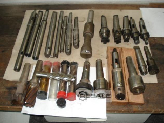 Machine : Tools for boring mill / radial drilling machine Type: MK5 5 drill rods φ 40 , 30, .. L- 280 – 400mm 3 extensions MK5 – MK4 , L-400-520mm 1 boring tool Oerlikon MK5, φ 70, 6-260 5 top-mounted milling mandrels MK5 - φ 16, 22, 27,32,40mm 2 Clarkson clamp chucks 1 MK5 boring tool, adjustable, φ 60mm 2 Shots 2 milling cutters: End mill roughing/plain φ 56x100mm, / groove milling cutter 4 milling cutters: 2 roughing/plain φ 40x12o, 2 roughing cutters 1 Reduction from MK5 to SK40 Weight: approx. 70kg kg PRICE : € 600,- ex works ! A - T-slot size: approx. 21.5mm, B-35, thread M20 16 T-slot nuts 20 pcs threaded rods M20, L-120 – 400mm 3 x 2 pcs clamping claws 4 nuts long, 6 nuts, washers 2 blocks for adjustment with adjustment screw 4 blocks 80 x 60 x40mm ( underlay )