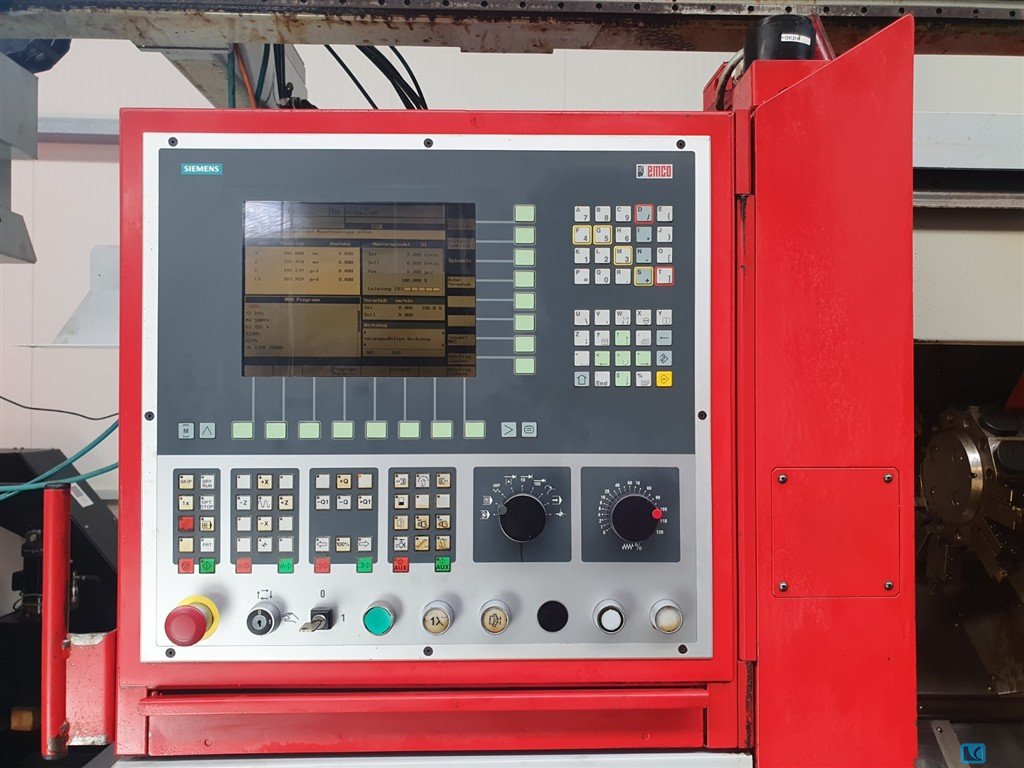 A CNC universal tool milling machine Emco is available. Travel X/Y/Z: 450mm/300mm/350mm, table dimensions X/Y: 800mm/400mm, speed: 2500rpm, tool holder: SK40, quill stroke: 100mm, milling head swivel: +/-90°, feed: 400mm/min, rapid traverse: 4m/min, machine dimensions X/Y/Z: approx. 1500mm/1500mm/1700mm, weight: approx. 1500kg. An on-site inspection is possible.