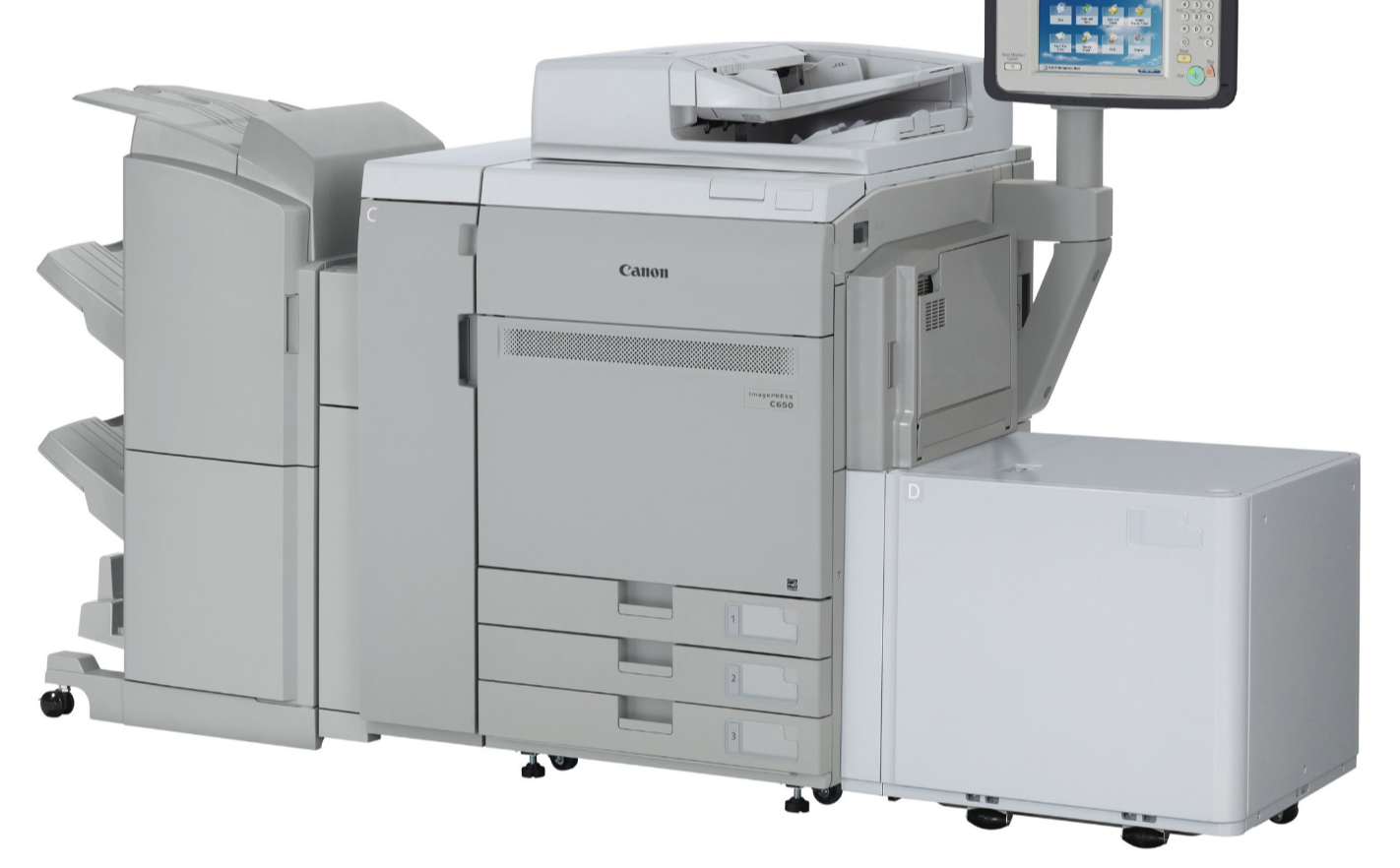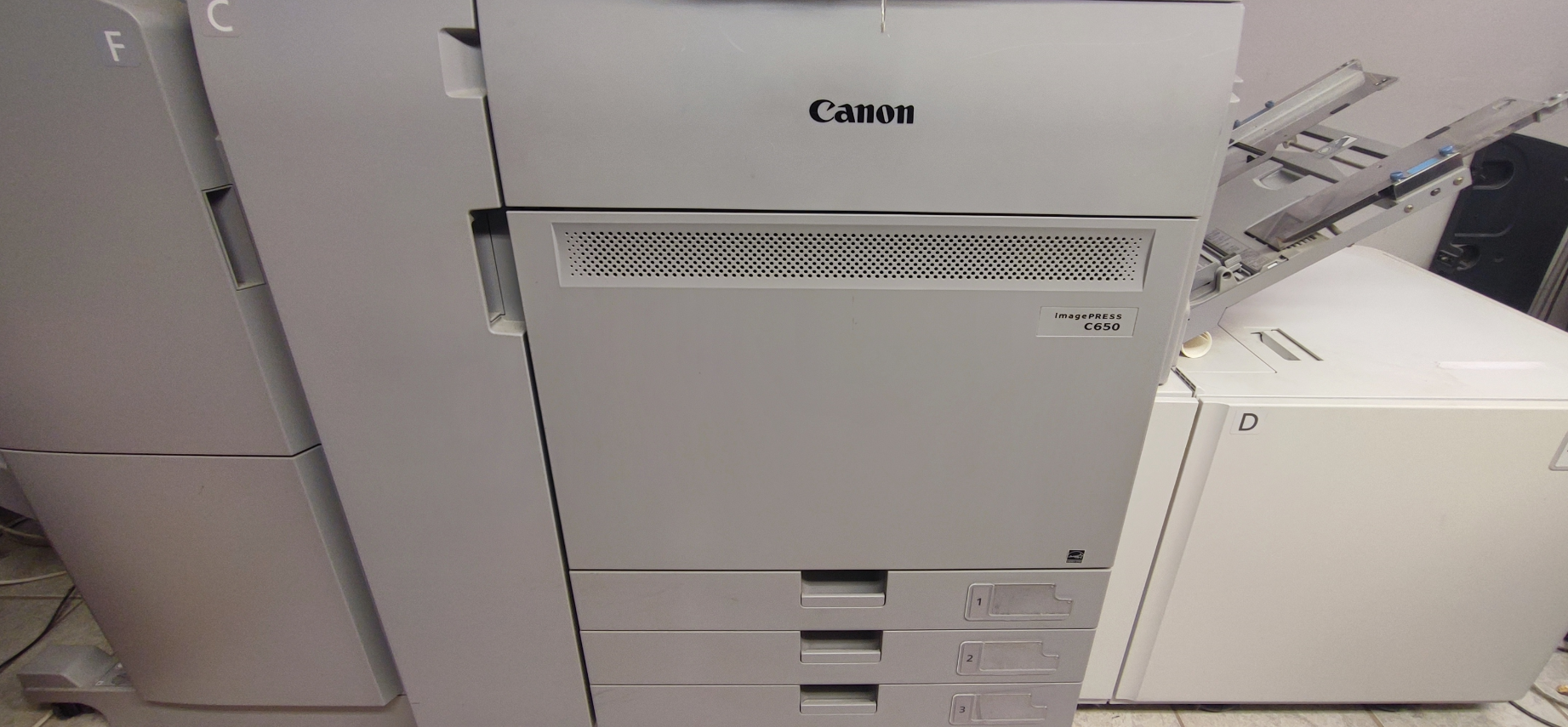 Manufacturer: CANON Model: Imagepress C650 Year of Manufacture: 2018 Usage Counters: - 112 Total (Black / Large): 165,411 - 113 Total (Black / Small): 78,580 - 122 Total (Full Color + Single Color / Large): 189,172 - 123 Total (Full Color + Single Color / Small): 4,553 Refurbished.10-15 toner cartridges per color, several waste toner containers Find more here - / Contact us at -