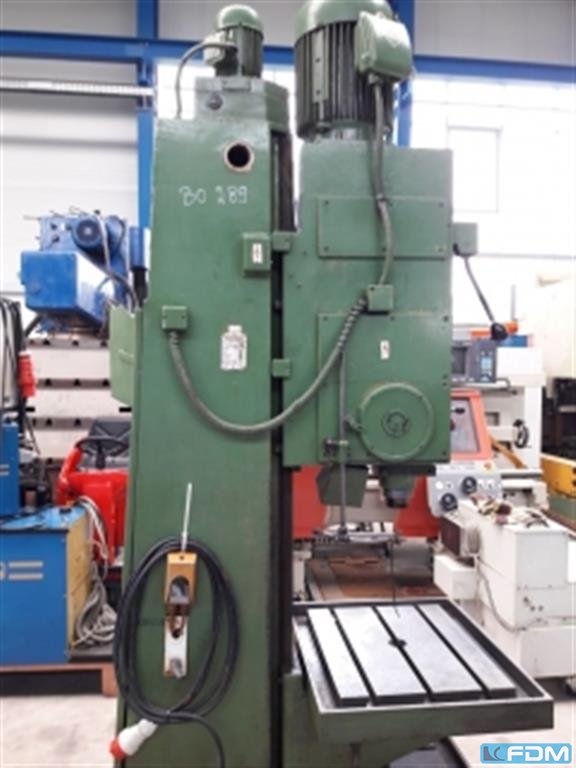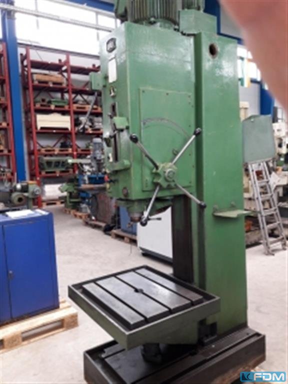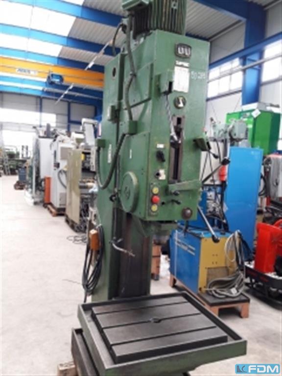Bohrleistung in Stahl (-Ø: 45 mm throat: 1250 mm workpiece height max.: 1100 mm swival range +/-: 360 ° height adjustment: 745 mm base plate surface area: 1450 x 920 mm Bohrspindel-Ø/ Aufnahme: 90 mm / MK 5 bore spindle stroke: 355 mm max. torque on the spindle: 250 Nm feed power: 14000 N turning speed range: 20 - 1200 U/min feed range: 0,063 - 0,63 mm/U drilling capacity steel/cast iron: mm power capacity: 3,7 kW weight of the machine ca.: 3,0 t dimensions of the machine ca.: 2,1 x 0,9 x 3,3 m • cube table 650 x 650 x 500 mm, • coolant device The data for this ad was created with ModulMWS - the software solution of LogoTech oHG.
