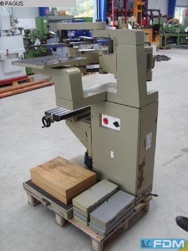 Universal tool-feeding machine, used universal milling machine, used Type FU 250 x 1000/2 Fabr. WMW Auerbach Built: 1988 Table size/ table: 1130 x 255 mm Laengsmotion/ longit. move: X 690 mm Horizontal movement/ horiz. Move: Y 190 mm Vertical movement/ Vert. move : Z 360 mm Tool holder/taper: ISO 40 Spindle speeds R+L infinitely/ speeds of spindle ( left/right) 56 - 2800 rpm. Pre-shot stepless all axes X, Y and Z/ feeds all axis 10 - 630 mm/min / 250 mm/min Drive power/ load 3.8 kW Weight: 2 t Specification: Vertical head,shock head