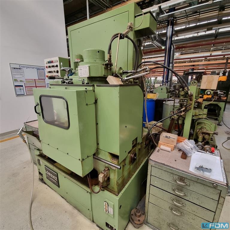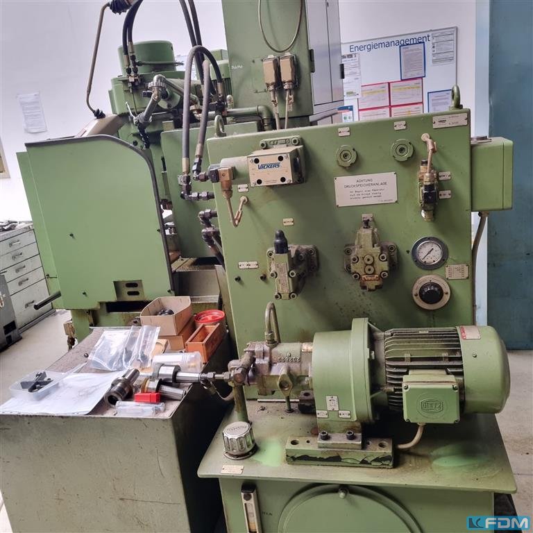 max. wheel diameter: 180 mm gear width: 45 mm max. module: 4 min. module: 0,5 stroke length max.: 0 - 52 mm spindle taper: innen MK 4 table diameter: 160 mm table bore diameter: 75 mm no. of strokes: 355 - 630 Hub/min feed range: 0,008 - 0,4 mm/Hub dimensions of the machine ca.: 2,30 x 1,50 x 2,36 m power capacity: 6 kW weight of the machine ca.: 2.500 kg With rack and pinion unit Change gear set Year of construction: Approx. 1981 The data for this ad was created with ModulMWS - the software solution of LogoTech oHG.
