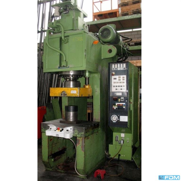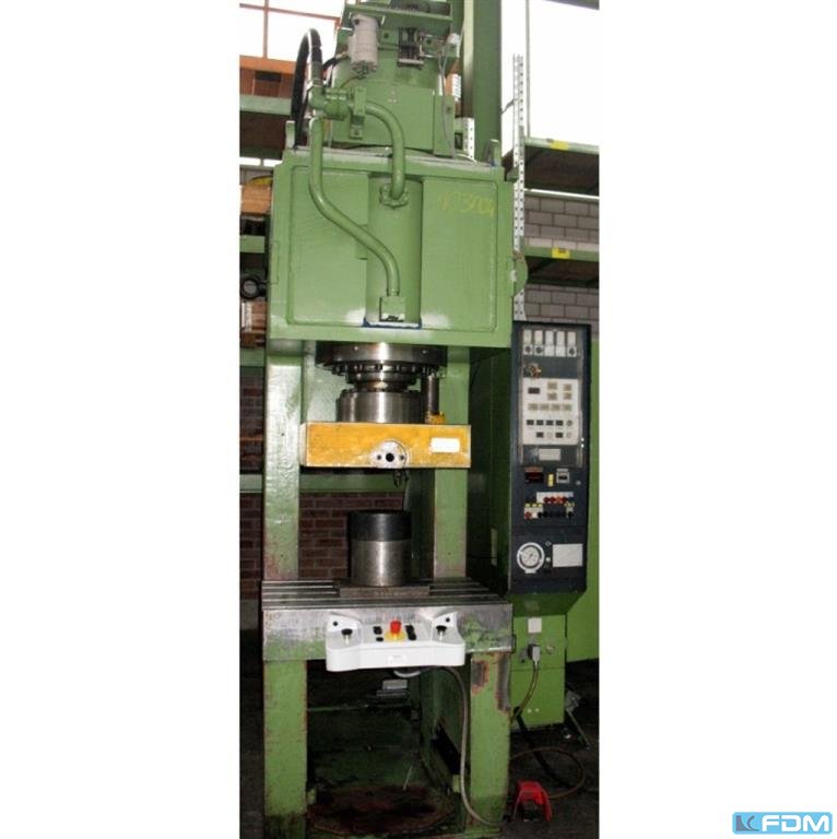 Technical data: -Compressive force 100 t -Throat 320 mm -Wide stand below the Guide 400 mm -Table size approx. 850 x 610 mm -Discontinued diarrhea hole in the table 335 / 300 mm -thickness of the table clamping plate 90 mm -gr. Height approx. 300 mm -Plunger area 600 x 335 mm -Adjustable height of the RAM 80 mm -Stroke adjustment 10-130 mm -Emissions er hub in the RAM 32 mm -Speed continuous operation approx. 56 / min -Drive 400 V / 11 kW -Space requirement approx. B H 1900 x 2800 X 2200 mm -Weight approx. 9000 kg Starring:-UVV press backup controller PREVENTA -Hydr. + pneumatically actuated clutch -LUTEX auxiliary braking system -Central lubrication