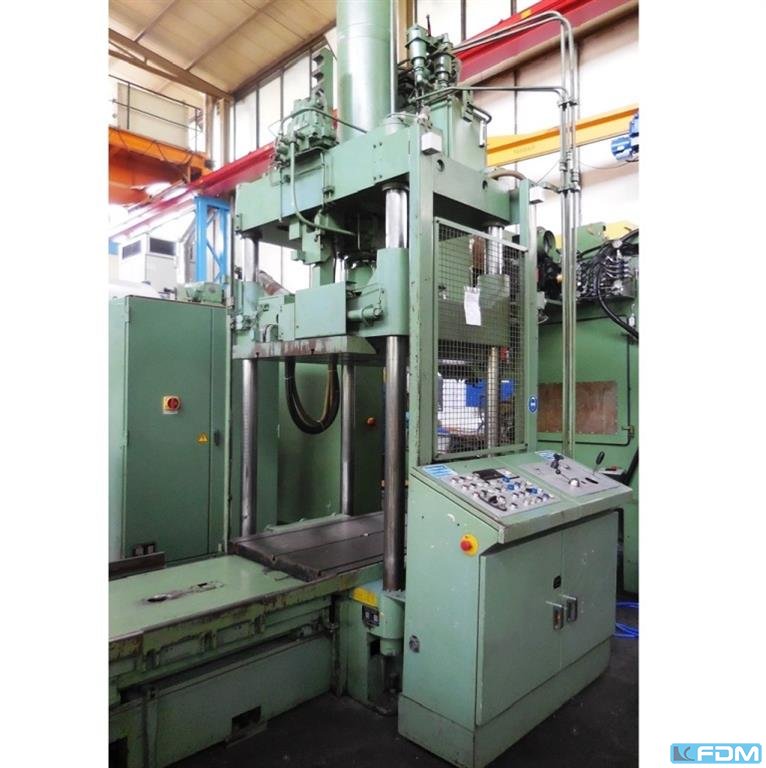 pressure: 200 t table length: 2500 mm table width: 1800 mm table travel: 2700 mm dayligth: 2250 mm upper clamping surface:: 1800x2500 column base area: 1900 mm total power requirement: 22 KW weight of the machine ca.: 30 t dimensions of the machine ca.: . m Nominal force: 1000 kN Top plate pivots Table is movable The tech. Data are manufacturer or operator information and therefore non- binding. We reserve the right to prior sale, Our terms and conditions of sale apply exclusively. About us More than 400 of our own machines in stock Over 15,000 m² of storage space, 70 t crane capacity More than 10,000 items and accessories for your workshop If you are interested in selling machines, production lines, or your business, please contact us. You can find further offers on our website. Tours are possible by appointment. We look forward to your visit. Your Markus Hirsch Team The data for t ...