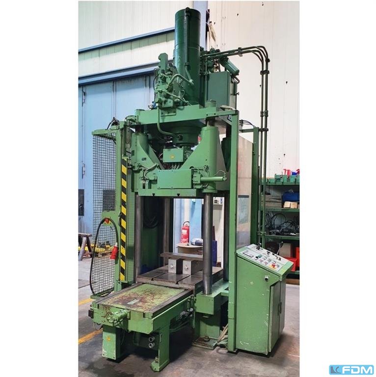 pressure:100 t distance between columns:1250 mm stroke:1035 mm table surface area:890 x 1280 mm distance table/ram, max. stroke up, adjustment up:1035 mm table height over floor:630 mm ram surface:1000 x 1200 mm side window:700 mm max. tool weight:7 t max. capacity of swivelling ram plate:3,5 t oil volume:180 l power capacity:9,0 kW weight:11,0 t Dimensions (WxDxH):2,1 x 3,8 x 3,9 m ram interlocking:hydraulic