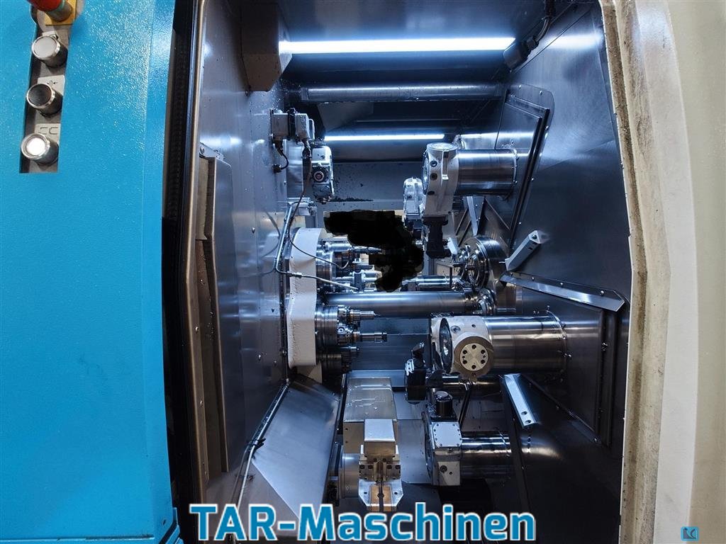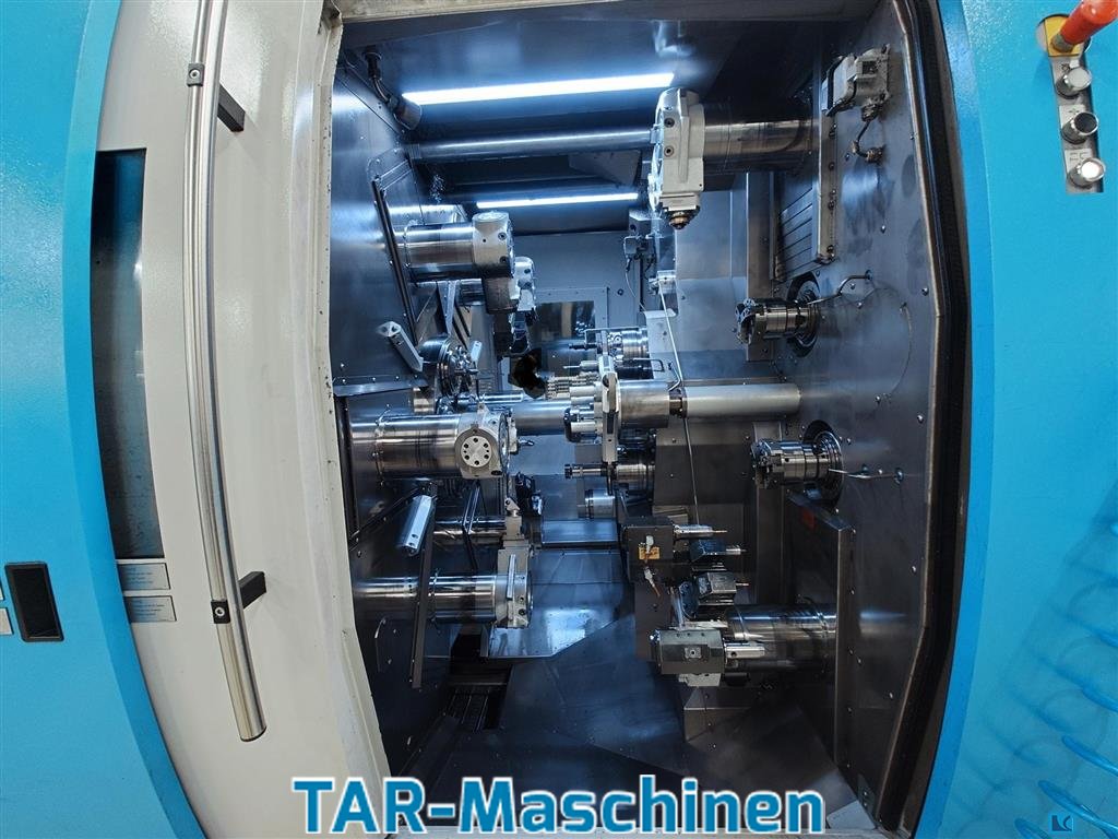 number of spindles:9 spindle passage:46 mm Article: CNC-controlled multi-spindle automatic lathe Manufacturer: Schütte Type: SC9-46 Yob: 2016 Six-spindle automatic lathe with 6 main spindles with max. nominal throughput D=46mm and 3 counter spindles Main spindles: 6 motor spindles D46mm, 5. 000 rpm, 35 Nm to 80 Nm Cross slide units, transverse: 6 units, in positions I to VI, Slide units, longitudinal: 5 units, in positions I to V, Slide units, longitudinal: 5 units, in positions I to V, Counter spindles: 3 units, one each in positions VI, VIII and IX, 7. 500 rpm Cross slide units, transverse: 2 units, in positions VIII and IX, Control: Siemens SINUMERIK 840SL with double NCU Software: Schütte SICS, Sinomerik Operate 4.5, Safety Integreted, Spindle coupling package ?CP-Expert?, for up to 8 spindle couplings (maximum expansion) Synchronous action package ?Level? 2, incl. cross-mode actio ...