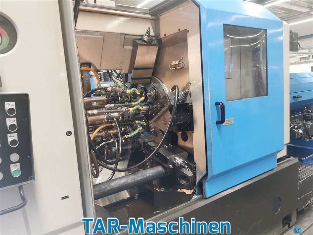 number of spindles:6 spindle passage:32 mm Article: cam-controlled multi-spindle automatic lathe Manufacturer: Schutte Type: SF32 S Dnt Yob: 2000 Eight-spindle automatic lathe with 6 main spindles max. nominal diameter: D=32mm pick-up unit, Spindle drum with hirth coupling, Elbaron oil mist filter, sorting chute, Interface for: IEMCA PRA bar loading magazine (optional I: IEMCA PRA52/42/F); coolant tank with hinged chip conveyor; Schimpke KSS active cooler, control: Siemens S7-300 PLC; tooling included in delivery may differ from the images Please, contact us for getting more information and pictures on mail(at)tar-mc.com or www.tar-mc.com