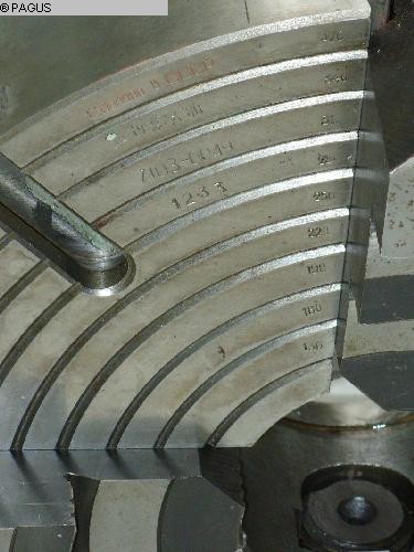 faceplate diameter: 7100 mm swing diameter: 8000 mm turning height: 5030 mm distance between table and cross rail: 5495 mm workpiece weight: 200 t faceplate turning speed range: 0,3 - 19 U/min main drive motor: 125 kW cross travel: 4400 mm swivel range of slides - vertical: +30 / -15 ° Control: FANUC 18i-TB total power requirement: ca. 155 kW weight of the machine ca.: 291 t dimensions of the machine ca.: 8,6 x 17,6 x 8,3 m 2003 Retrofit and change to CNC - CNC Control Fanuc 18i-TB --2-Axis simultanous (X- & Z) - Z-Axe with hydraulic balance - Digital Scale in X and Z Axis - 2 rams on crossrail The data for this ad was created with ModulMWS - the software solution of LogoTech oHG.