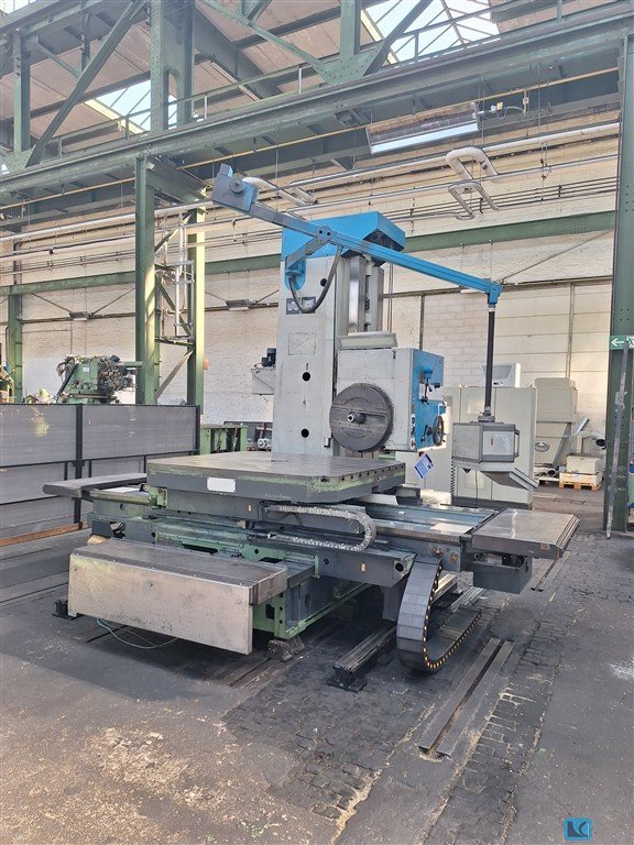 spindle diameter: 90 mm x-travel: 1000 mm y-travel: 1200 mm z-travel: 1200 mm feed movement: 710 mm spindle taper ISO: 40 turning speed range: 8 - 1600 U/min table-size: 1120 x 1000 mm table rotating: 360 ° table load: 2,5 t total power requirement: 11 kW weight of the machine ca.: 10 t dimensions of the machine ca.: 4,5 x 3,3 x 3 m separate switchboard, rapid feed, some tool holders, without face plate The data for this ad was created with ModulMWS - the software solution of LogoTech oHG.