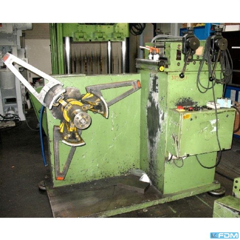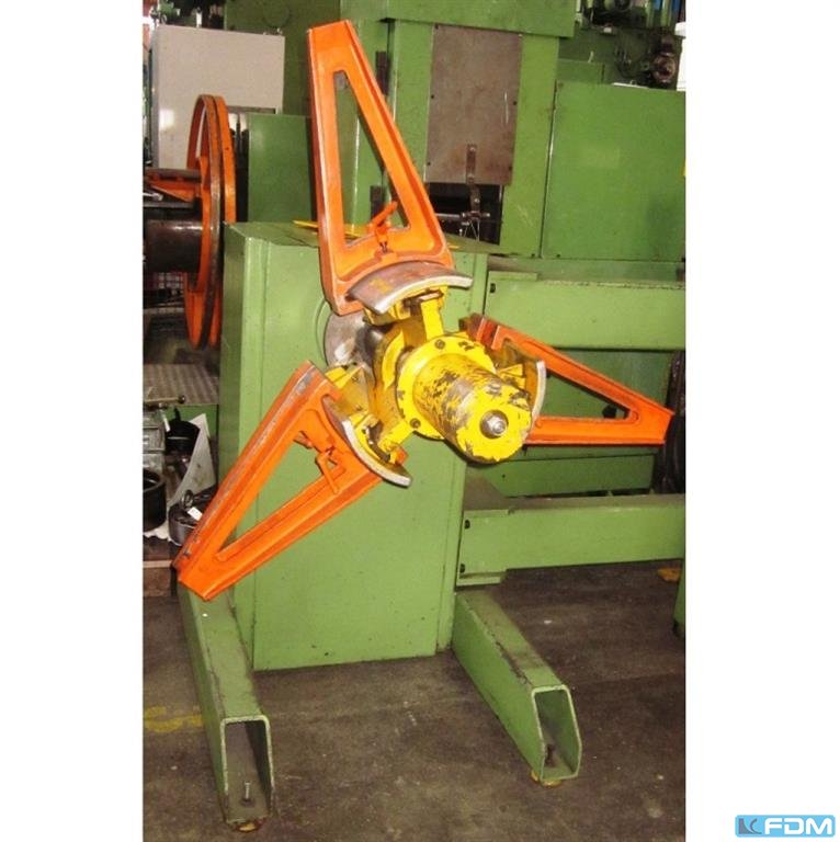 Tandem Decoiler Condition very well used, ready to use. Year of construction 02/90 Manufacturer: Wanzke Pressen Inner diameter: 220 mm Inner belt width: 200 mm Load capacity per reel is 150 kg. whereby the reel must be screwed to the ground. Weight approx. 450 kg Incl. wiring diagram
