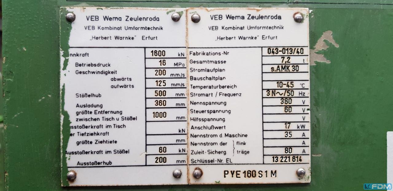 pressure:160 t throat:360 mm stroke:500 mm total power requirement:17 kW weight of the machine ca.:7,2 t dimensions of the machine ca.:2,0 x 0,95 x 3,70 m table-size:900 x 630 mm Documents:vorhanden