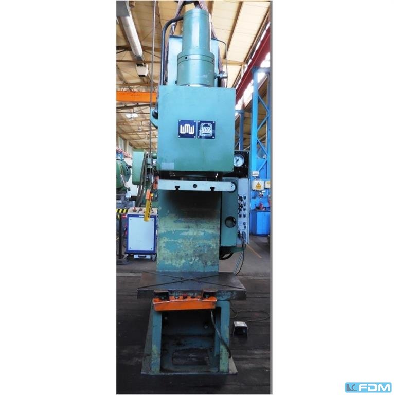 Eccentric C stand press, little used C frame - eccentric press, used Type: PED 63.3 S4 manufacturer: WMW Year of construction: 1994 Pressing power / rated pressure: 63 t Sheet thickness / material thickn. 3.2 mm Table size / surface of bed: 800 x 580 mm Hole in the table / hole in table: 300 mm diameter. Stroke / stroke of slide: 8... 120 mm Number / number of strokes: 56 / 90 / min Tappet adjustment / adjustment of slide: 70 mm The maximum distance between Table and plunger / max distance between table and slide: 560 m Projection / Cap: mm Power of main motor / power of main motor: 6 kW Weight / weight: 5.5 t