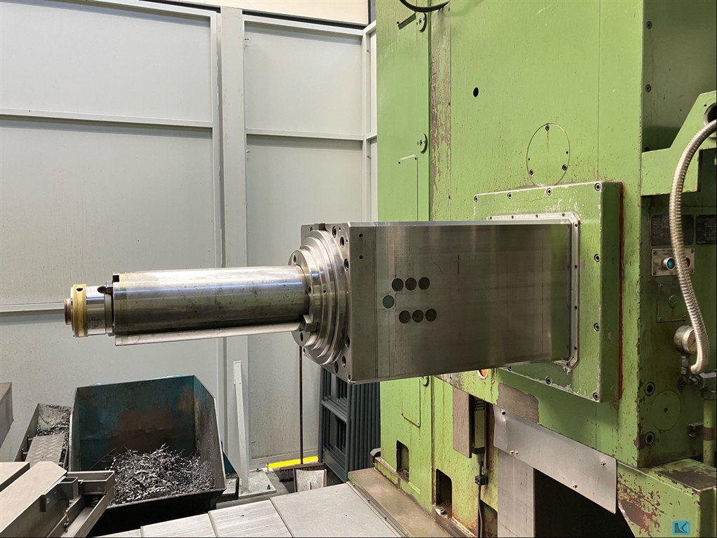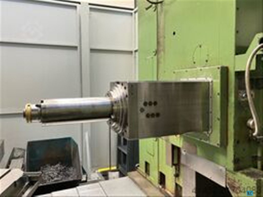 spindle diameter:150 mm x-travel:3000 mm y-travel:2000 mm spindle stroke:700 mm dimension of the ram:340 x 340 mm ram stroke:700 column travel:1500 mm spindle taper ISO:50 bore spindle turning speed range:3,2 - 1600 U/min table surface area:2000 x 2500 mm max. table load:25000 kg rapid speed:5 / 10 m/min feed speeds:1 - 5000 mm/min total power requirement:100 kW weight of the machine ca.:57 t dimensions of the machine ca.:8,4 x 6,8 x 5,9 m with CNC SIEMENS 840 D full B-axis aerostatic guideways facing head ( 3,2 - 140 rpm ) angular milling head 1000 Nm coolant attahcmnet with internal cooling supply