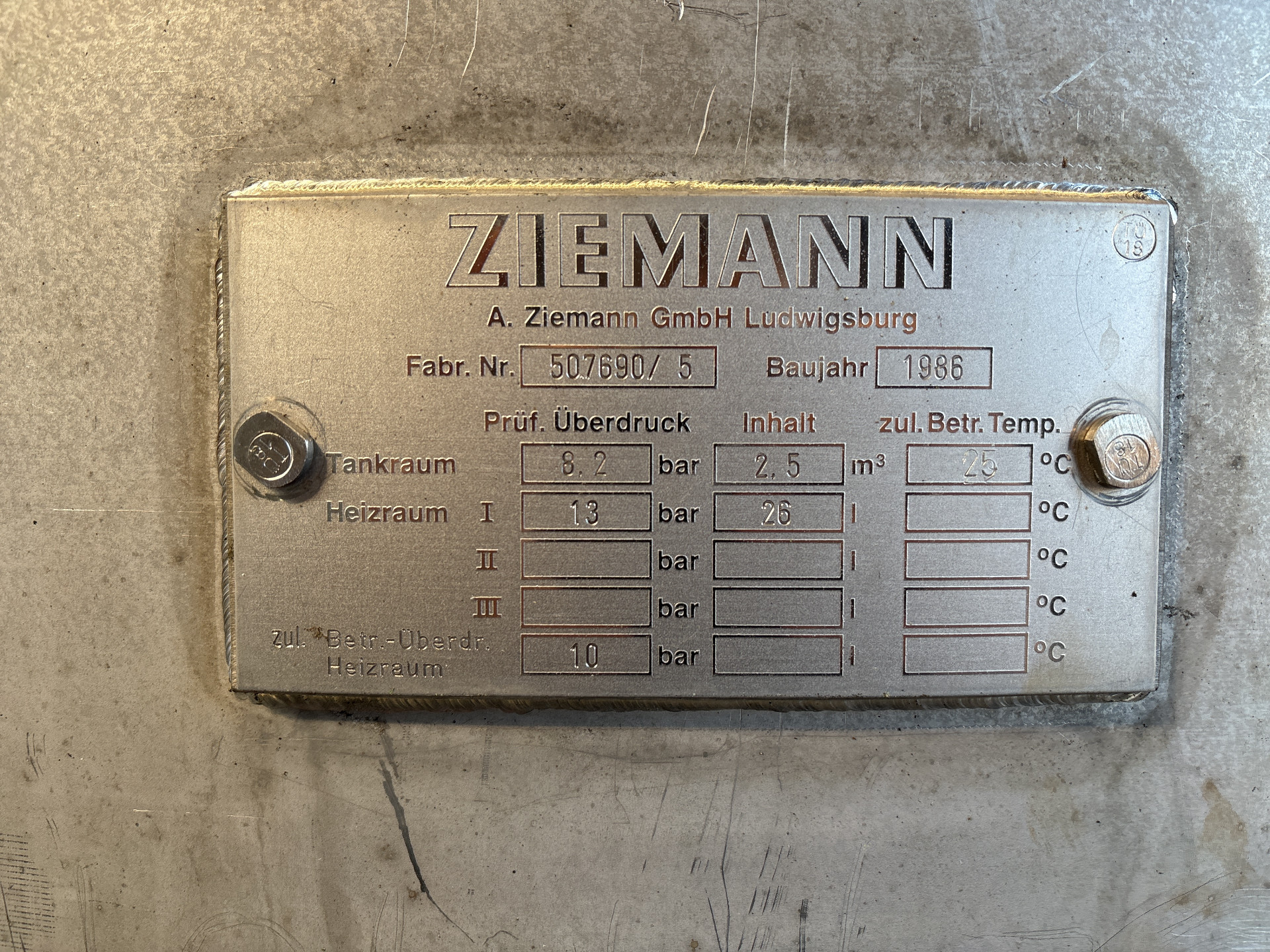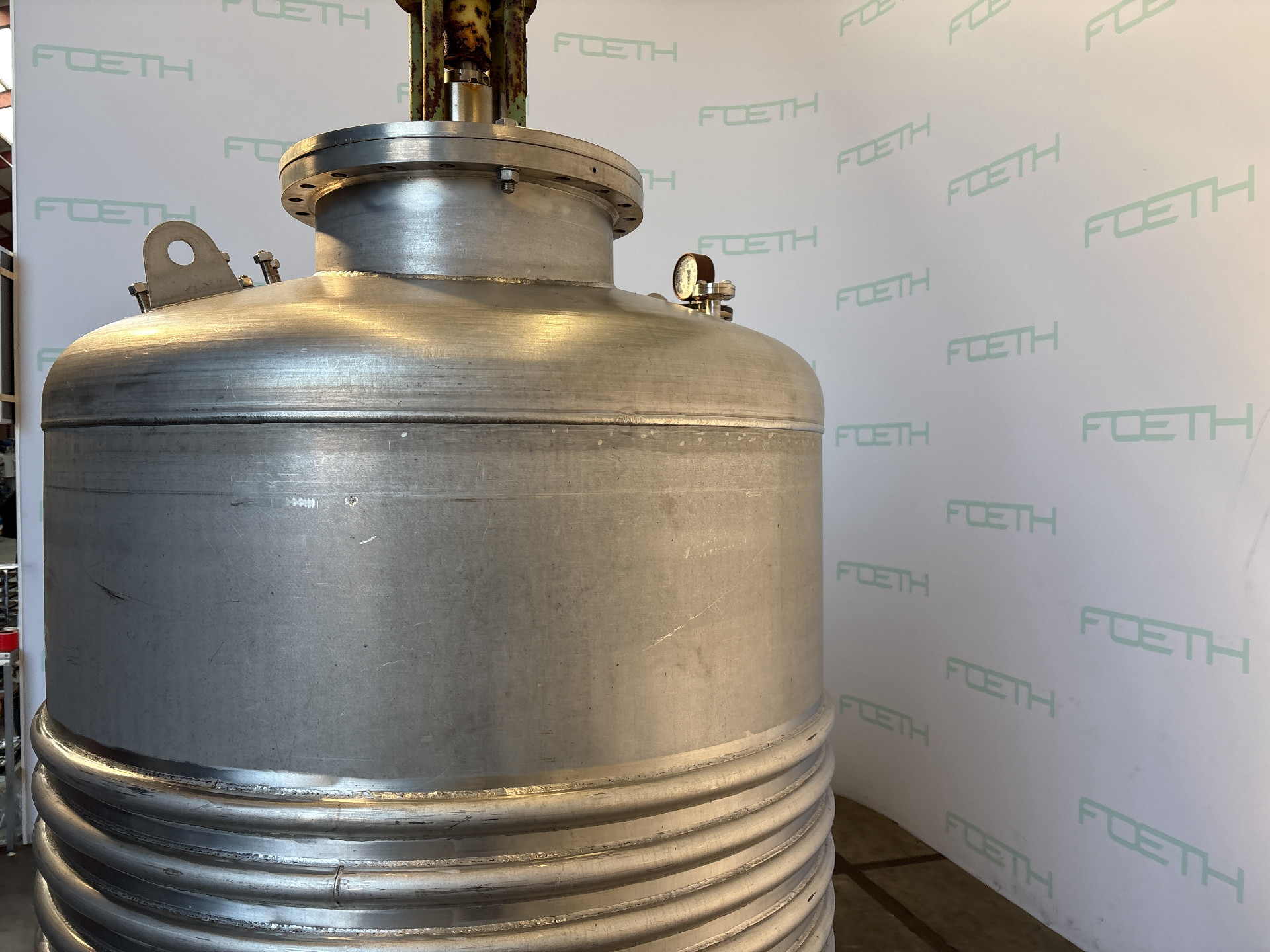 General SKU104U1450 LocationBarneveld MakeZiemann Ludwigsburg Pressure Working pressure5.4 Bar Vacuum possiblecheck Working pressure jacket10 Bar Main Features MaterialStainless steel Volume2500 Ltr. Motor0.75 KW Specified Features - Stainless Steel Reactor Reactorcheck Capacity2500 l. Vessel sizesø 1400 x 1250 mm Dished bottomcheck Dished top sidecheck Top connections4x ø 25 mm Outletø 35 mm Half coil jacketedcheck 26 l. Max. temperature140 °C With propellor stirrercheck Ekato Motor0,75 kW, 380 Volt (Ex) Stainless Steel Reactors MaterialStainless steel 1.4541 (321) Information No.507690/5 Year of construction1986 Mounted on legscheck Floorspace1,6x1,5 m Total height3,3 m Weight800 kg ATEX compatiblecheckStainless Steel ReactorsDiscountZiemannReactors > Stainless Steel ReactorsDiscountBrand > Ziemann What you can expect from Foeth: -- Machine is in w ...